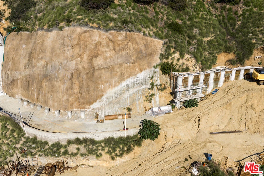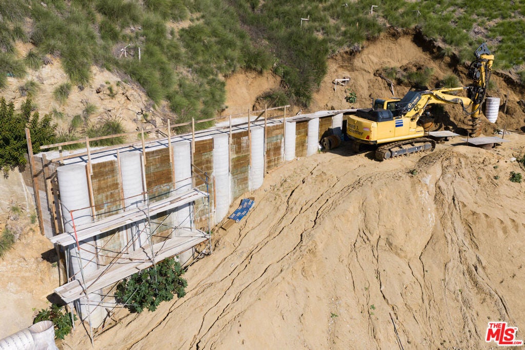 This exceptional offering is the sister property to 2034 Sunset Plaza, positioned directly next door and designed with the same world-class vision. Encompassing approximately 11,000 square feet and soon to be listed at $25 million, the site offers buyers a rare chance to preview its nearly completed counterpart at 2034 Sunset Plaza to fully understand the scale, design, and end result this property will deliver. What makes this opportunity especially valuable is that extensive foundation and preparatory work has already been executed (by DJ Sheffler - one of the top foundation contractors in the industry) - significantly de-risking the project for a future buyer. Ground has been broken, property has been cleared of debris, rough-graded, and improved with temporary access roads to ensure safe movement of heavy equipment. Staging areas and solid work platforms were established to support the machinery required for installing the deep foundations - including 34 piles per drilling shafts aprx 80' deep - handling and relocating spoils, fabricating and placing rebar, and setting concrete, along with multiple crane and pump configurations used throughout construction. Temporary lagging has also been installed to secure access points and safely lower the grade level of the site, ensuring the project can resume seamlessly. The entire hillside has been fully shotcreted with extensive soil nailing, and the major slope cuts are already complete. The site features an additional lower entrance, an unusually large flat motor court that can accommodate up to eight cars - a rarity in the Hollywood Hills, plus a secondary motor court at the top. The property also captures a stronger view corridor than its sister home currently nearing completion, offering elevated sightlines and exceptional privacy. A truly rare, advanced-stage development opportunity with RTI plans by notable IR Architects in one of the most coveted view corridors in Los Angeles
