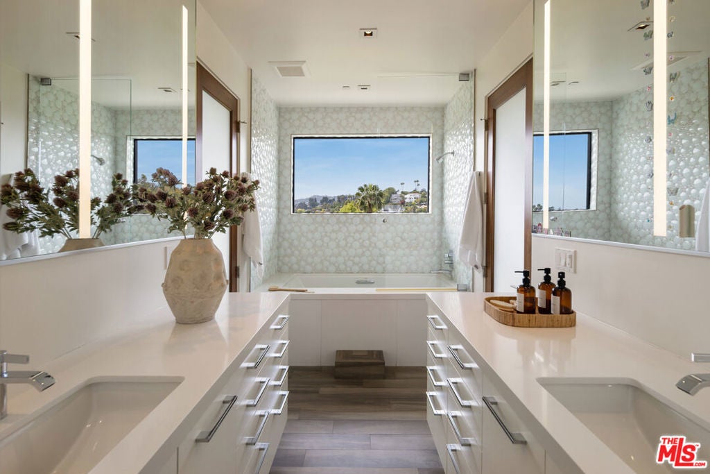 This custom home situated in the historical Oaks neighborhood has many standout features: 1.) Gated 30-Home Enclave - True privacy, security, exclusivity, and no HOA. 2.) Rare 9-Car dedicated parking spaces, unmatched in the Hills. 3.) Hollywood views without the hills drive - Elevated for scenic views, yet just 2 minutes from groceries, restaurants, and coffee shops. 4.) Multiple Lots / APNs - Future flexibility with legal parcel separation strategic way to avoid ULA tax when selling. This architectural, eco-lux retreat on a 15,000+ sq ft lot, moments from Griffith Park trails and Franklin Village includes solar with full backup, natural-gas generator, EV charging, Sonos throughout (even in the pool underwater), resort-style outdoor amenities, a fruit tree garden, and a magazine-worthy pool + spa. Inside you will find porcelain tile flooring throughout, spa-level bathrooms, Gaggenau appliances, a walk-in cooler, Lutron light system, Aprilaire HVAC system, filtered water throughout, custom automatic blackout shades, and more. The owner spared no expense while customizing this private, high-tech sanctuary where luxury, nature, and city life combine for a true one-of-a-kind LA retreat.