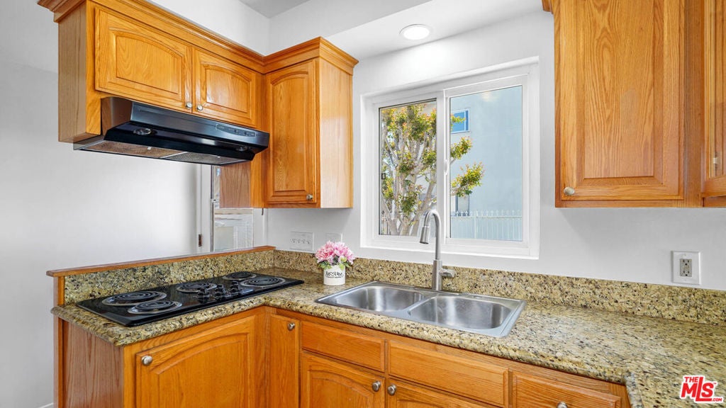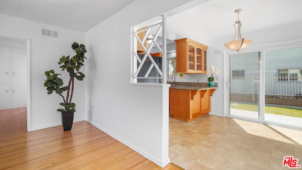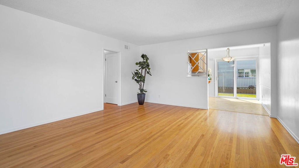 Nestled in Upper Ladera Heights among single family homes this charming triplex boast a spacious and bright 2bedroom downstairs unit. Contemporary in style with huge windows throughout this unit has gleaming refinished hardwood floors and loads storage space. Bright kitchen with built in cook top, granite counters and glass pane cabinets. The Breakfast area opens to your own patio. Newly remodeled bath with huge walk-in-shower and large vanity. Large bedrooms with great closet space and new closet doors. Newer windows with white faux wood blinds throughout the unit. Kitchen closet with hook-ups for a side by side washer and dryer, your own detached 2-car garage, 1/2 bath in the primary bedroom, white faux wood blinds throughout the unit, lots of storage, great street and so much more. Don't miss this one! Easy access around town and to Inglewood Sofi stadiums, Airport, Downtown and Silicon Beach areas.