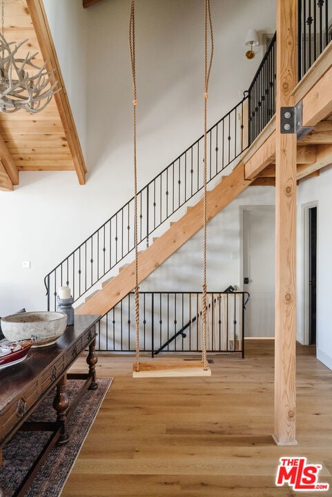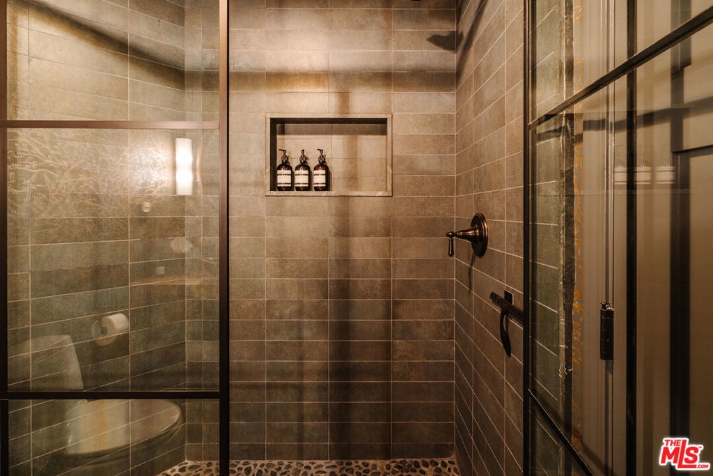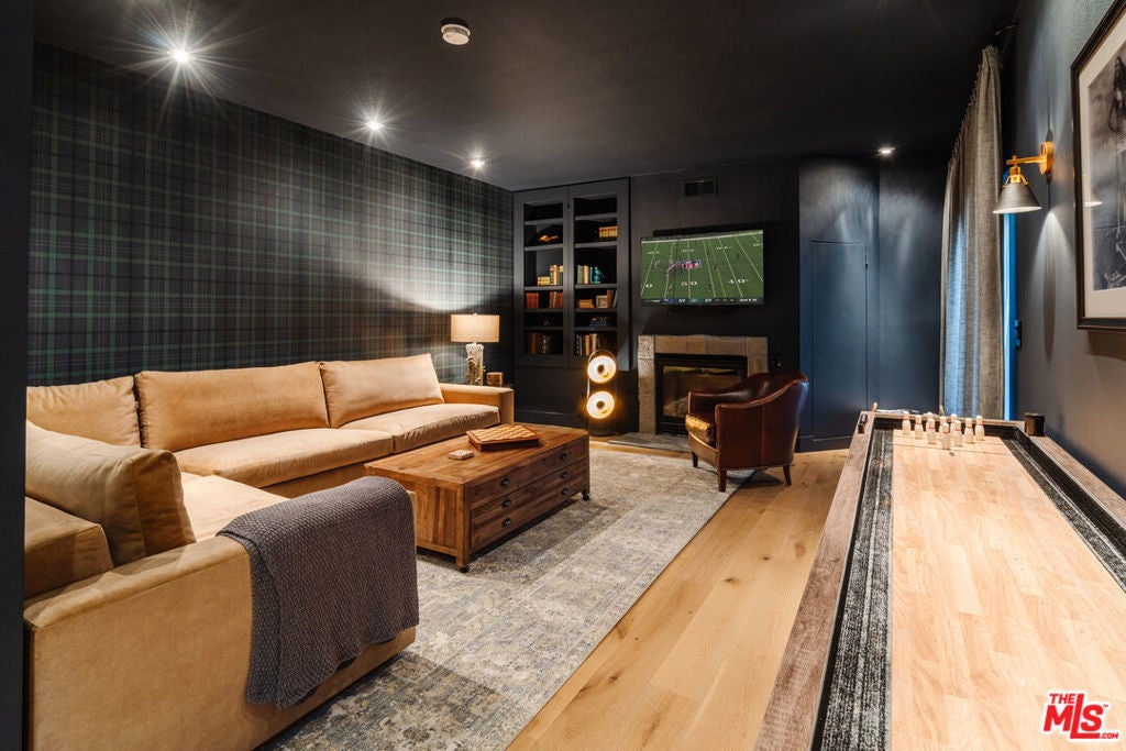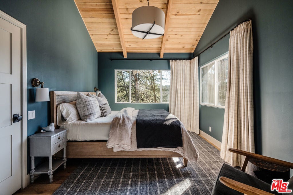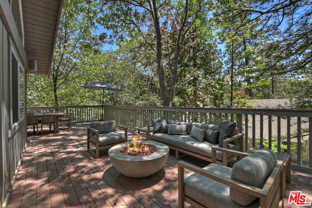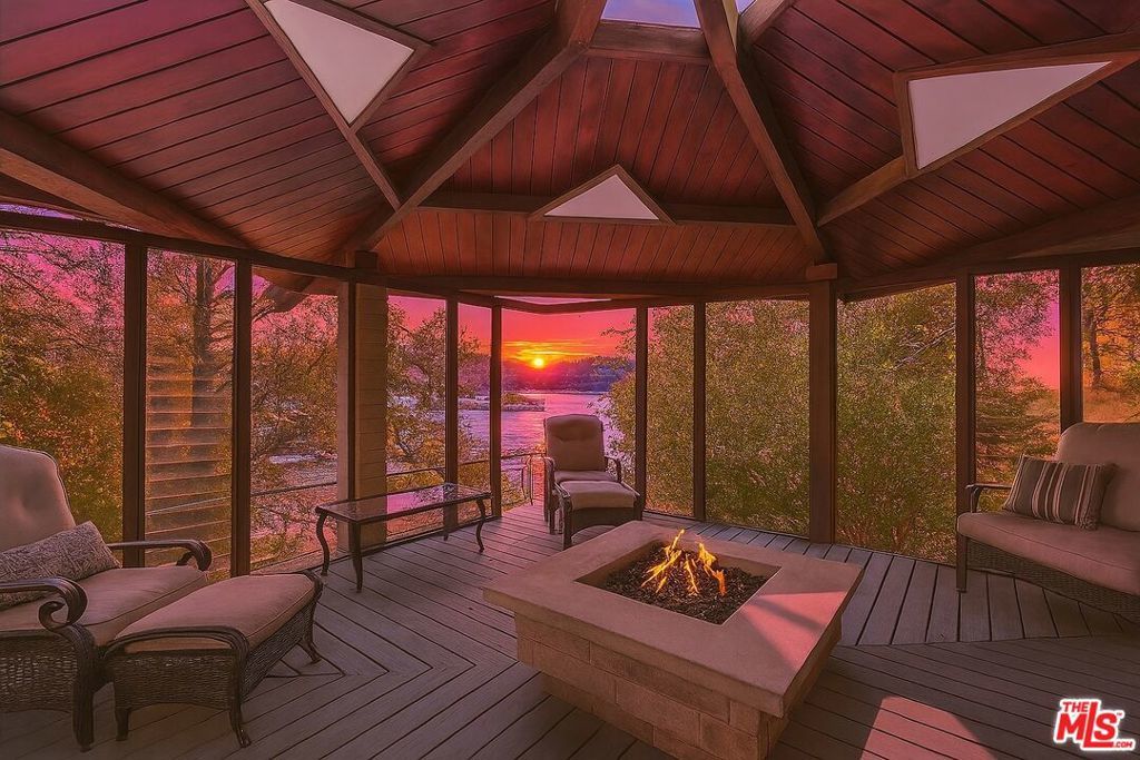 Lakeside Mountain Haus. This home is a true showplace and an entertainers dream. Beautifully remodeled and fully furnished, this turnkey Lake Arrowhead Lodge is located in the prestigious gated community of North Shore Estates. This high end remodel was designed by an award-winning interior specialist. The residence exudes elevated mountain style with curated finishes, custom details, and a welcoming aesthetic. Generous indoor and outdoor living spaces and modern upgrades make the atmosphere amazing. The living room greets you with soaring wood-beamed ceilings, a striking floor-to-ceiling stone fireplace, and an inviting, warm energy. A whimsical swing in the entryway sets the tone--leave your cares behind, relax and enjoy. The chef's kitchen is stunning with custom cabinetry, premium finishes, and a built-in dining nook - perfect for morning brunches or festive evenings. A main-level bedroom offers convenience and flexibility, while two additional upstairs bedrooms feature vaulted ceilings and peek-a-boo lake views. A lovely library loft overlooks the living room, ideal as an office or reading space. The lower level is a total mood change - a stylishly renovated den with its own fireplace and a full bath, making it a comfortable and private sleeping quarters or - a great space for your primary suite. Step outside to enjoy multiple outdoor spaces, including a large front deck, an oversized wrap around back deck, a lower patio, and your own private hot tub with custom hardscaping, beautifully surrounded by mature oaks, pines and vibrant maple trees. Whether you're sipping morning coffee or stargazing at night, you'll be peacefully immersed in nature. Additional smart home features include with keyless entry and remote thermostat access, A/C, an EV charger, with a water filtration system in the kitchen. Private driveway leads to tons of parking. Upper driveway for main level entry, lower driveway for level entry into the den, an attached garage and covered parking next to the garage. Plenty of room for several cars and a boat. Easy access to the Lake and Lake Trail plus The residence comes with a Dock House (shared ownership), an architecturally notable structure designed by David C. Fowler and photographed by Julius Shulman. Looking for the entire Lake Arrowhead package? - You can have it all - Dock Slip and Boat are available for additional $. This is your chance to own a fully furnished, designer-renovated mountain home in one of Lake Arrowhead's most desirable lakeside communities. Experience a true four-season Alpine Mountain Resort - situated within 2 hours from most SoCal Cities.