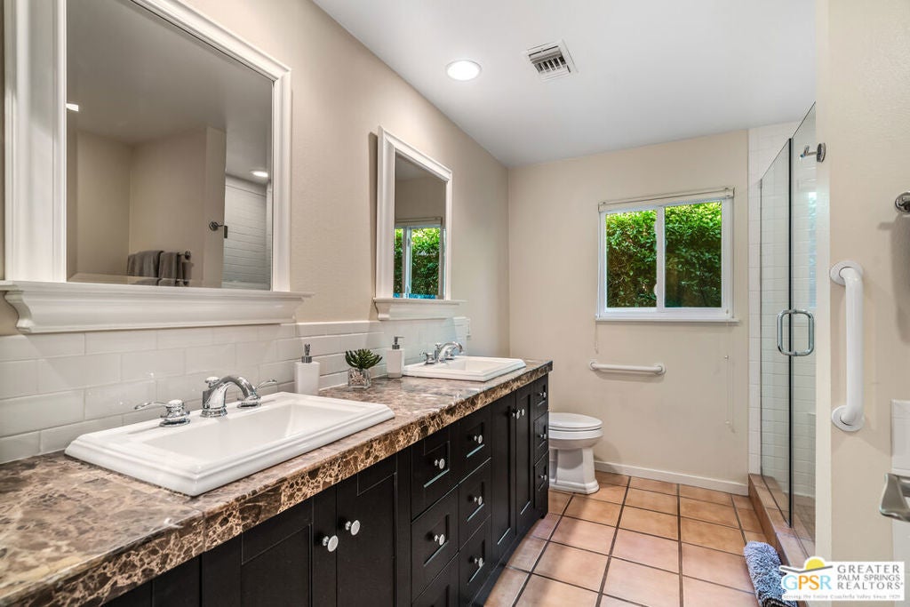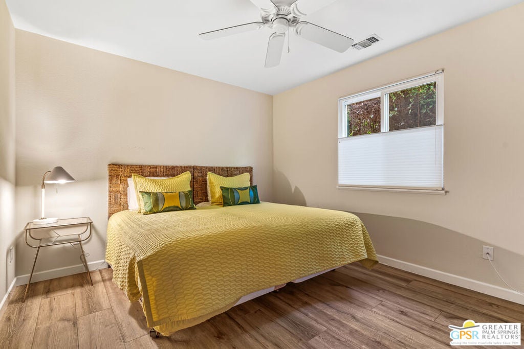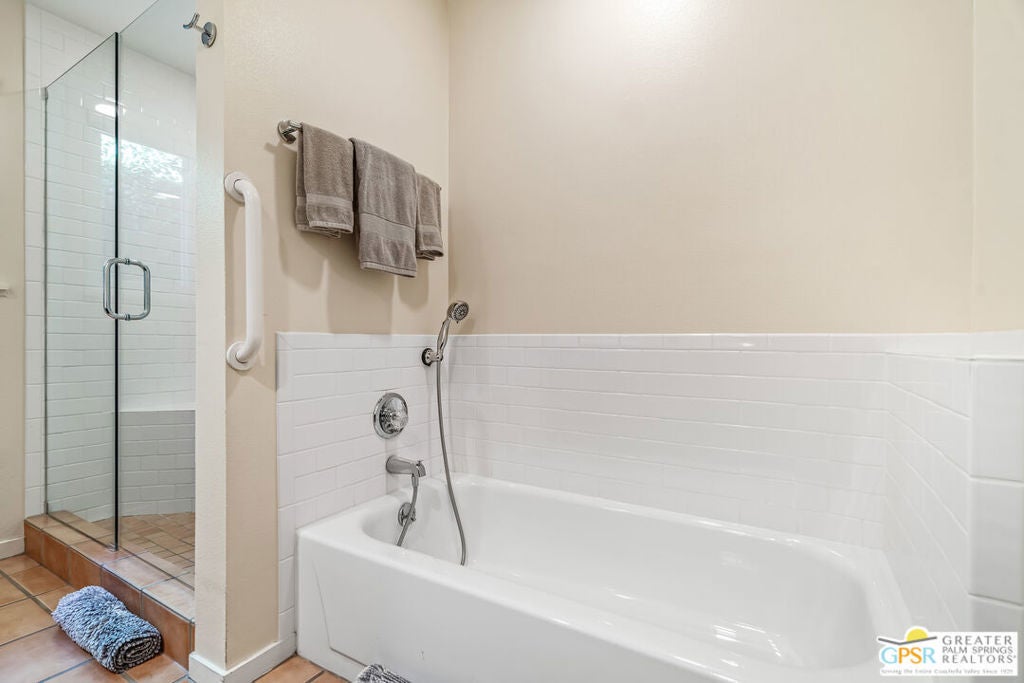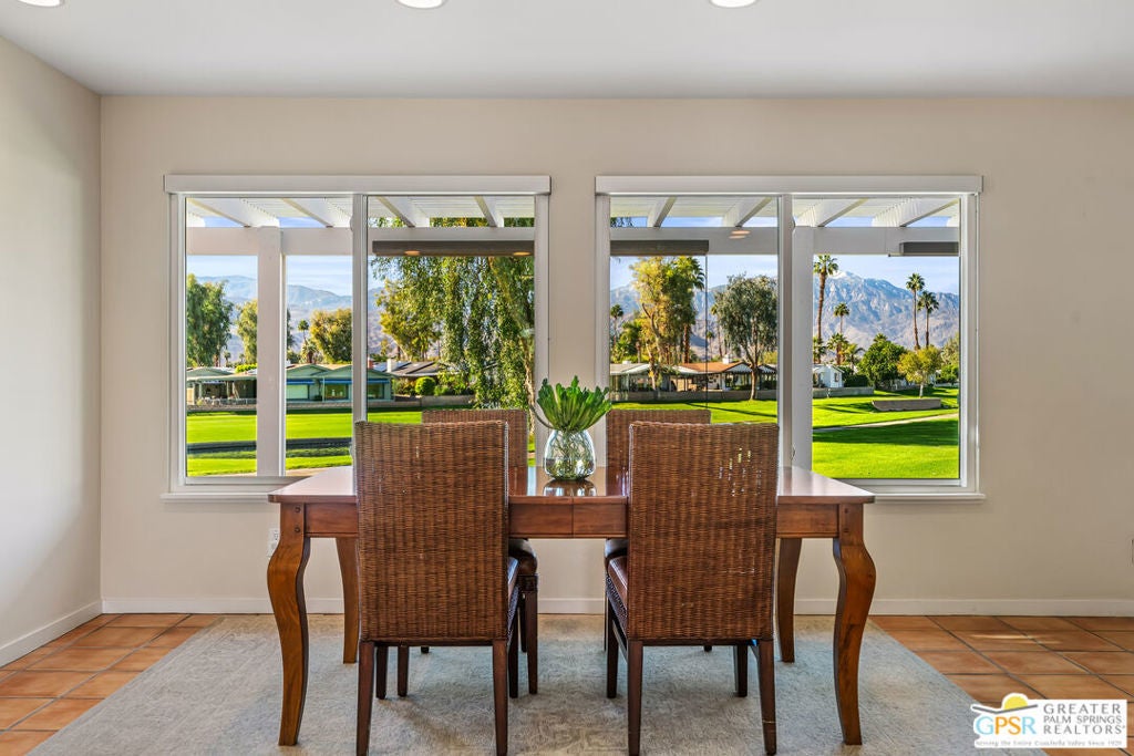 Gated Community where GOLF is included in your HOA! You own the LAND! Fabulous custom-built home with prime location, curb appeal, and breathtaking Santa Rosa, San Jacintos mountains and golf-course views! This beautifully crafted single-family home offers 1,740 sq. ft., featuring 2 bedrooms, 2 beautifully updated and spacious bathrooms, and a 2-car garage with direct access to the home. Inside, you'll find a gourmet kitchen with custom cabinetry, soft-close drawers, a spacious island perfect for entertaining, and stainless steel appliances. The open layout creates an easy flow for everyday living and hosting. One of the home's standout features is the expansive patio, an ideal place to unwind in the afternoon as you enjoy sunset views over the golf course, fountains, and the dramatic Santa Rosa mountains.. a truly serene setting. Located in the gated 55+ community of Portola Country Club, where you own the land, residents enjoy low HOA fees that include access to an 18-hole 3 Par golf course, three pools and spas, clubhouse, tennis, pickleball, bocce ball, dog park and a full calendar of activities. Close to El Paseo shopping, top restaurants, and the McCallum Theatre, this home offers both comfort and convenience. Leased solar provides added energy efficiency.