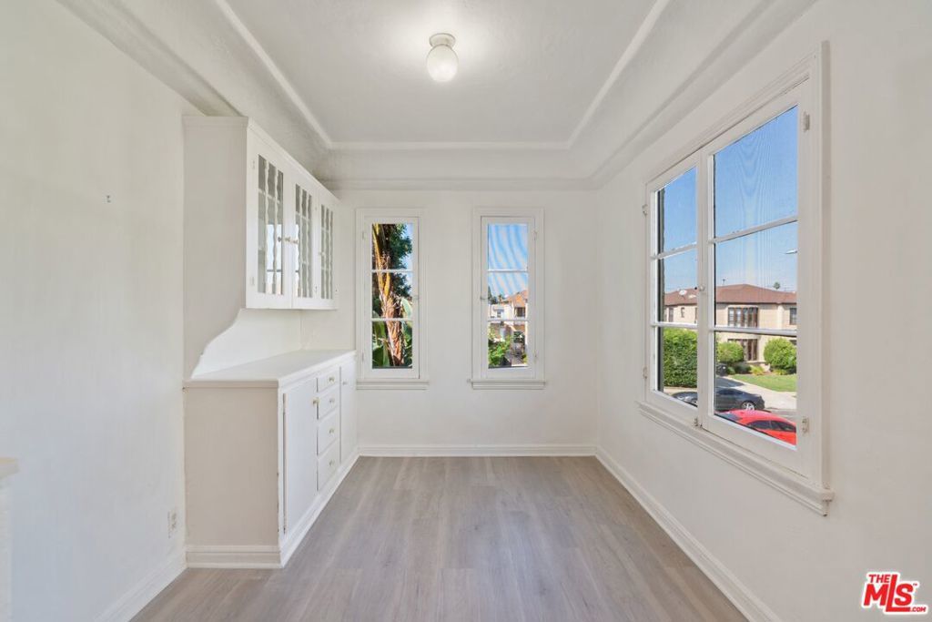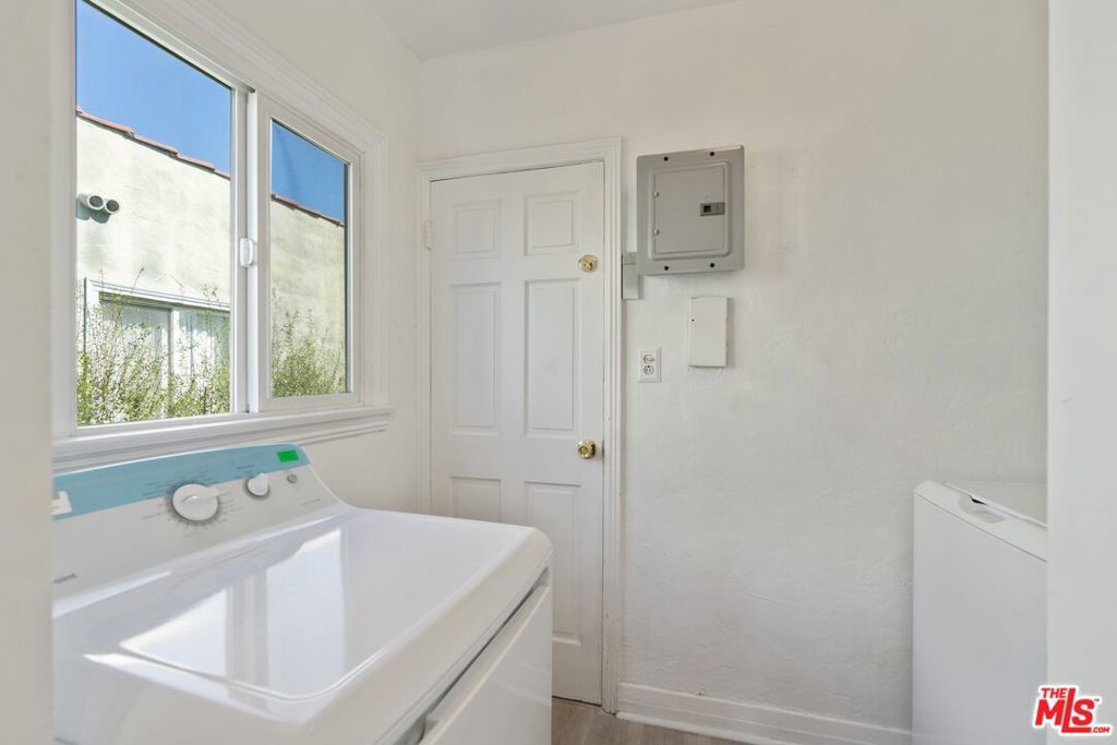 Welcome to this bright and spacious upper duplex unit filled with classic Spanish charm, centrally-located in Wilshire Vista. Positioned on the 2nd floor, enter into the expansive main living room flooded with natural light, complete with a decorative fireplace and tray ceilings. Continue seamlessly into a large designated dining room, which leads into a generous-sized, newly-updated kitchen with a separate breakfast nook with original built-ins. Off the kitchen, find a dedicated laundry area with W/D appliances and access to a set of stairs down to the shared backyard. The hall atrium boasts built-ins, a linen built-in and a cedar closet for your coats. The sizable primary suite is complete with high ceilings, a walk-in closet and an en-suite bath. The 2nd bedroom has 1 closet and a storage closet. 1 uncovered parking space is included with shared access to backyard. Tenant pays renter's insurance, gas, electricity, trash, cable/internet.