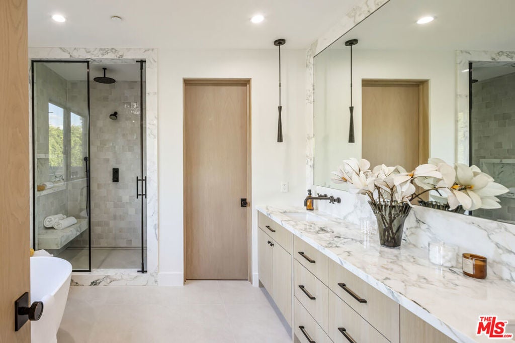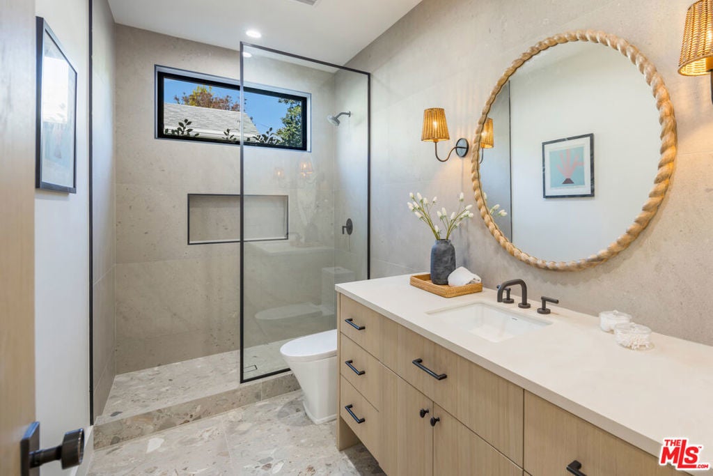 A striking statement in farmhouse luxury, this newly built estate with an attached ADU/guest house rests on a generous lot in the heart of Valley Village. Crafted for both everyday comfort and sophisticated entertaining, the open-concept main living space is centered around a chef's kitchen outfitted with premium Thermador smart appliances and an expansive island with seating. A formal dining area and spacious living room complete the main level, highlighted by an oversized sliding glass door that opens wide for seamless indoor-outdoor living.Step outside to discover a private backyard oasis featuring a sparkling pool and spa, framed by low-maintenance artificial turf that invites relaxation and play. Upstairs, four ensuite bedrooms provide ample retreat, complemented by a dedicated laundry room. The refined primary suite offers a private balcony, custom walk-in closet, and spa-inspired bath with soaking tub, rainfall shower, and dual vanity.The attached ADU, with its own private entrance, presents a versatile living arrangement with a comfortable lounge, kitchenette, two bedrooms, and two bathrooms ideal for extended family, guests, or a home office. Additional highlights include a multifunctional media room, soaring ceilings, a two-car garage, and a Control4 smart home system with integrated speakers, Nest thermostat, and security cameras.Perfectly positioned within the highly regarded Colfax School District, this property is just moments from the vibrant dining, shopping, and entertainment and Ventura Boulevard.