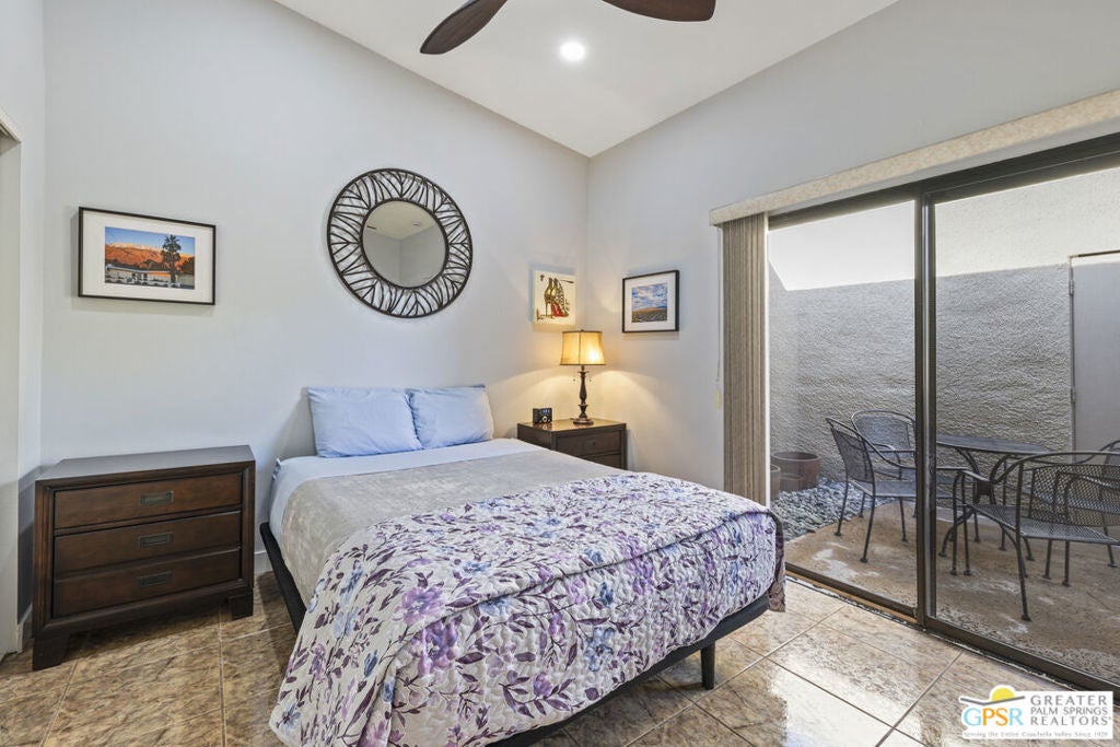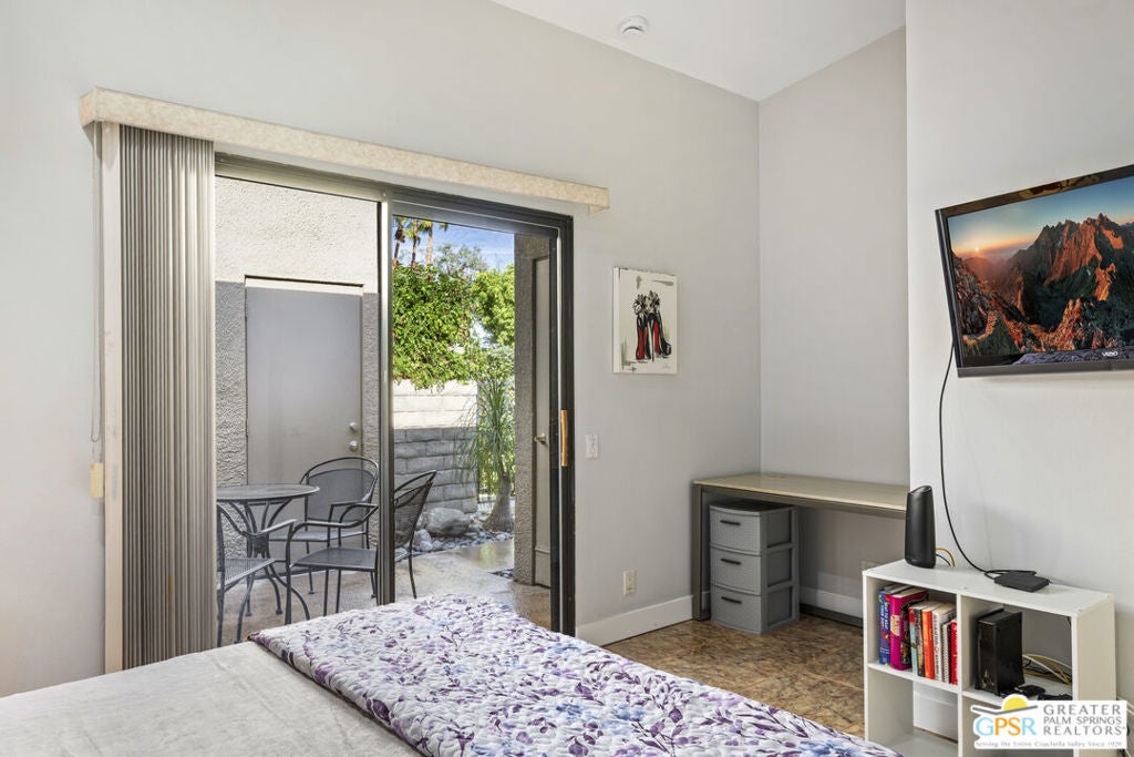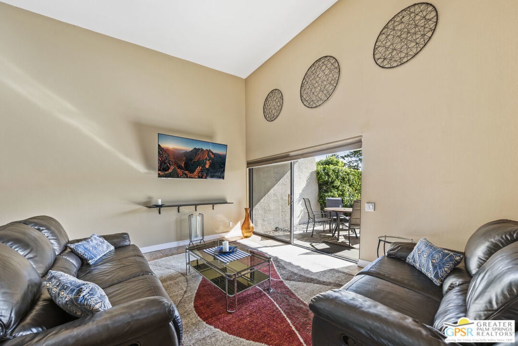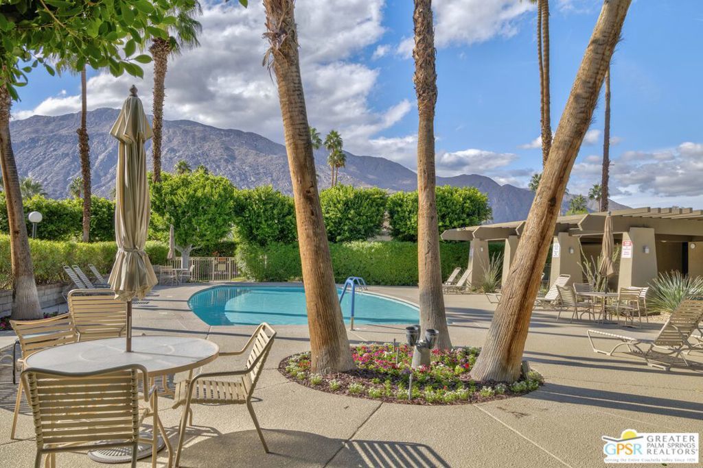 FURNISHED CONDO RENTAL RATES- 1 yr $2950 monthly. 30 days $3,750. 60 days $3,550 monthly. 90 days $3350 monthly. If renting for month of April only, $6,500. Mid Century Donald Wexler design. Enjoy spacious carefree living and sweeping mountain views close to downtown Palm Springs! Seasonal, one year or one year+ rental period preferred. This furnished, pet friendly (2 pet limit) Condo w/private entrance offers great separation of bedrooms/bathrooms. 10ft+ ceilings, and large glass sliding doors makes the Condo feel very spacious. Kitchen is updated w/stainless steel appliances, quartz countertops. Front and back private patios-ideal for entertaining or solitude. Semi private back yard. 1 car garage is located in front of Condo. The community offers 2 heated pools, 3 spas, two tennis courts, 4 pickleball courts. Small dog park too. The community AND condo have a strict no smoking policy.