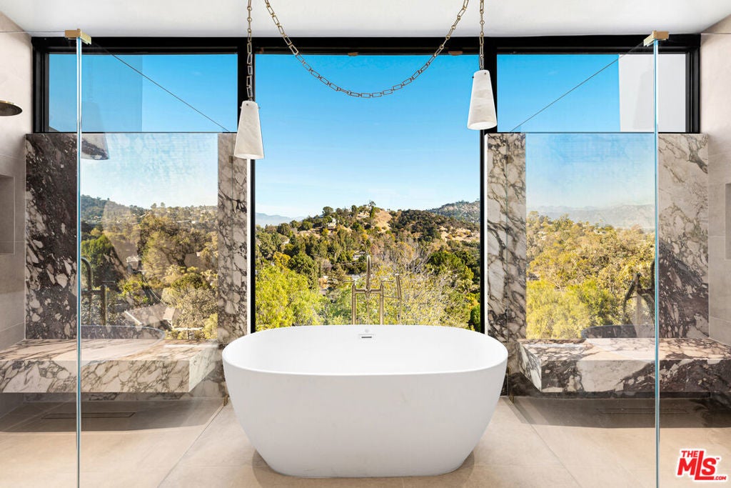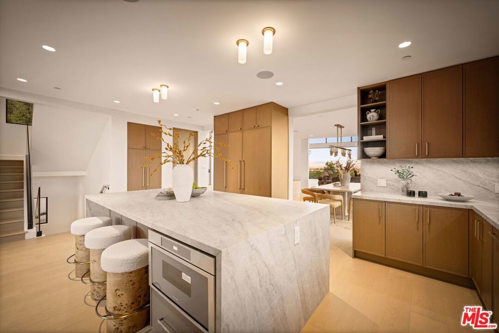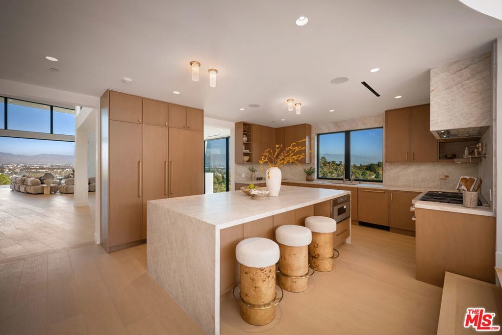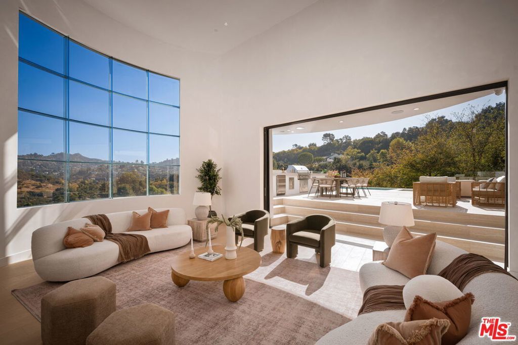 This property is available for short-term and long-term rentals, each with its respective pricing options. It is fully furnished, decorated, and equipped with hotel-like essentials and amenities. With our concierge team available to assist 24/7, this home rental offers a five-star hospitality experience, whether you are staying for a few days, a month, or a year.Perched high above Studio City's coveted Silver Triangle, this architectural masterpieces behind double gates for ultimate privacy offers an incomparable blend of art, design, and natural beauty. Conceived by visionaries Michael Pearce and David Kellen, the residence is perfectly positioned to capture sweeping 360-degree jetliner views that span the entire Valley, shimmering city lights, and the endless horizon.Every moment in this home reveals a new perspective: the sun rising over the mountains, golden sunsets washing over the hills, and the sparkling reflection from the infinity-edge pool that appears to spill directly into the sky.Inside, walls of glass slide away to erase boundaries between indoor and outdoor living, filling the home with natural light and panoramic vistas from nearly every room. Soaring ceilings and a dramatic sculptural fireplace create a gallery-like ambiance, while the **custom kitchencrafted in oak and exquisite quartzite**serves as both a functional workspace and a piece of art in itself.The primary suite is a private sanctuary designed to rival a world-class retreat. Enclosed in glass and framed by endless views, it features luxurious marble finishes, dual rainfall showers, a dry sauna, a Miele coffee bar, and a spa-inspired layout that allows you to wake up and unwind to nature's masterpiece.Thoughtful architectural lines, curated materials, and seamless transitions define every space. This is not simply a home it is an immersive experience that elevates daily living and captures the very soul of California luxury.