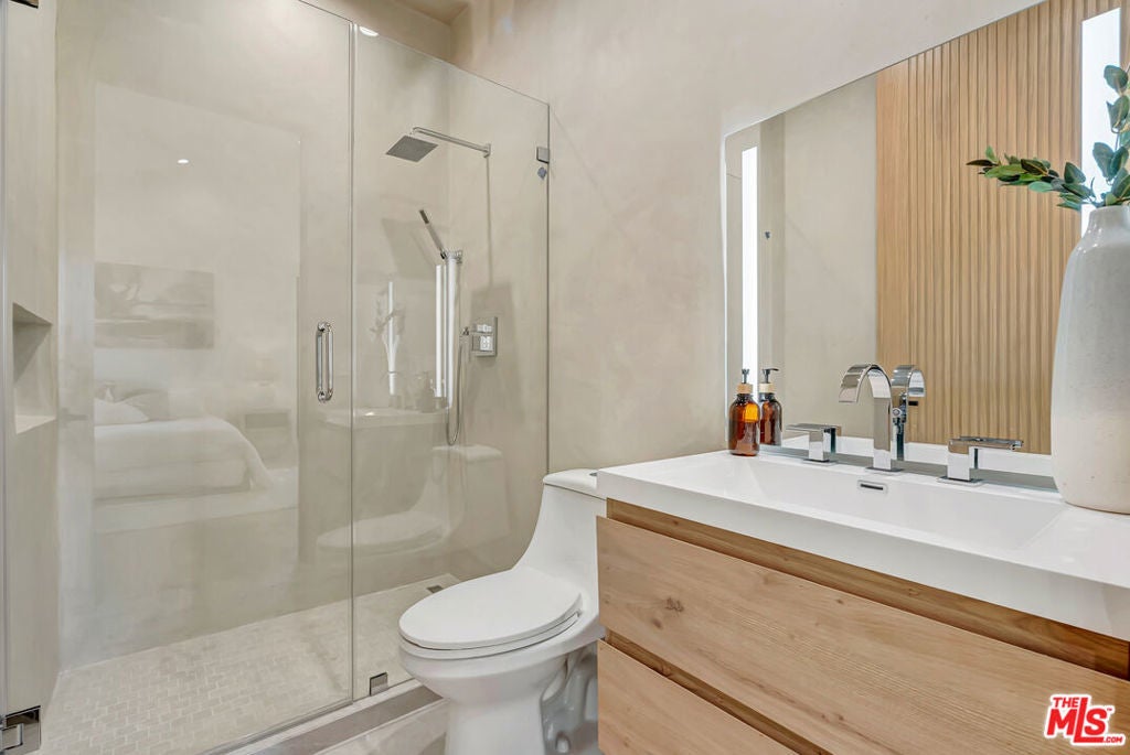 Welcome to this newly rebuilt contemporary estate, perfectly situated north of the boulevard in one of Encino's most sought-after neighborhoods. Set on a highly desirable street, this home offers an exceptional blend of timeless design, refined finishes, and modern luxury living. The main residence features 4 spacious en-suite bedrooms and 4.5 impeccably designed bathrooms across approximately 2,039 sq ft of living space, all on a 5,499 sq ft lot. Reconstructed nearly from the ground up with only a small portion of the original foundation retained home reflects expert craftsmanship and meticulous attention to detail throughout. A dramatic foyer introduces a sprawling open-concept floor plan thoughtfully designed to maximize natural light and interior volume. Soaring ceilings, expansive picture windows, and seamless indoor-outdoor transitions define the living areas. The formal living and dining rooms are enhanced by sophisticated architectural elements, creating an ideal setting for both intimate gatherings and large-scale entertaining. The primary suite serves as a private sanctuary, complete with a luxurious walk-in shower, custom vanity, and a beautifully appointed built-in closet. Glass sliders open directly to the professionally landscaped backyard, where a sparkling pool and spa are surrounded by lush greenery perfect for alfresco dining, morning coffee, or serene evening relaxation. The brand-new detached ADU adds an additional 1,066 sq ft of versatile living space. It includes 2 bedrooms, 2.5 bathrooms, a full kitchen, in-unit laundry, a private entrance, a separate backyard, and its own electrical meter, ideal for rental income, multigenerational living, or guest accommodations. Both the main residence and ADU are equipped with fully paid-off solar panels, offering energy efficiency and long-term savings. This turnkey modern masterpiece provides sophistication, comfort, and privacy while being moments from Encino's premier shopping, dining, and lifestyle amenities. Whether as an owner-user residence or a lucrative investment opportunity, this property is an exceptional offering in one of Encino's premier locations. Available for private showings. A must-see home. Schedule your exclusive tour today.