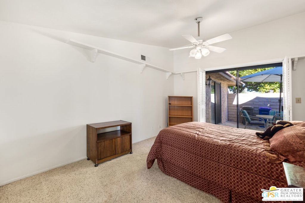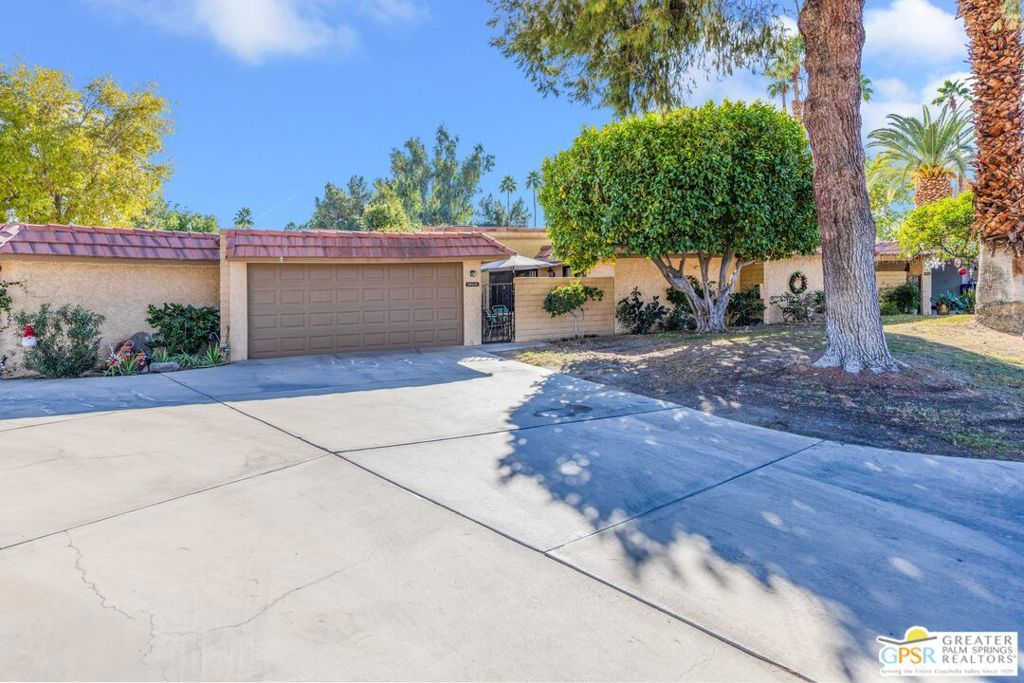 Spacious 2-bedroom + den (optional 3rd bedroom), 2-bath home in gated Cathedral Canyon Country Club. Entry hall opens to a formal living and dining room. Bedrooms are large and privately separated from living areas. Original kitchen and baths offer great potential for customization. West-facing orientation provides excellent morning and afternoon sunlight. Features include a large lemon tree in the front yard, back and side patios, and a semi-private backyard ideal for relaxing or entertaining. Short walk to the pool and conveniently located two streets in from the Cathedral Canyon entrance. Large two-car garage. Enjoy golf, tennis, and resort-style amenities, minutes to shopping, dining, and Palm Springs Airport in this sought after community.
