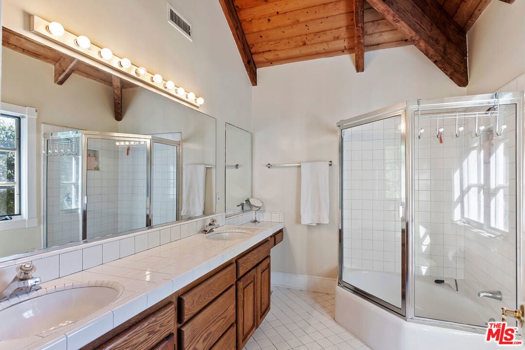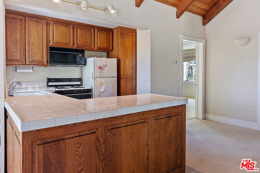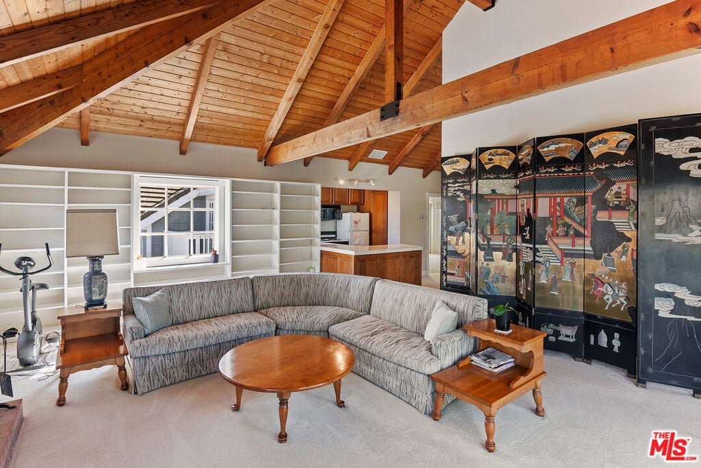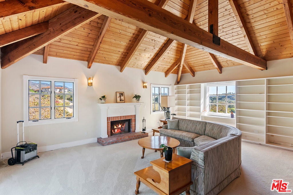 Spacious 4200+ SF home in Malibu Park on one acre with 5 bedrooms, 5.5 baths, breakfast area, dining room, 3 fireplaces, high beamed ceilings, 4 car garage and a pool. Included in the floor plan is a separate "guest suite" with the option of one or two bedrooms, two baths, living room with fireplace, kitchen and its own entrance. Large outdoor covered patio and fruit trees all in a private setting. Conveniently located near schools, Zuma Beach, hiking and riding trails, restaurants and local shops.