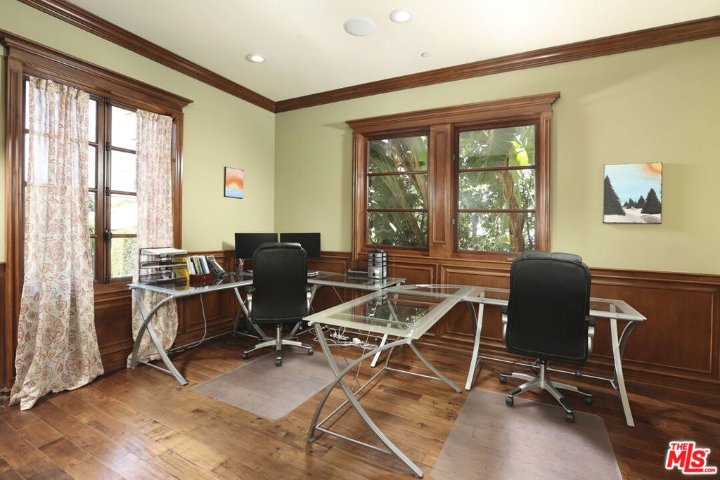 Experience timeless elegance and refined comfort in this Tuscan-inspired estate, ideally situated south of Ventura Blvd. in prime Encino. Set on a lush, gated property, this residence offers both privacy and serenity while showcasing exceptional scale and craftsmanship throughout. The home features six spacious en-suite bedrooms, complemented by a dedicated office, gym, and two remarkable family spaces: one a sophisticated music lounge, the other a vibrant media or game room complete with bar. The primary suite is a true sanctuary with dual walk-in closets, a spa-like bath, and peaceful balconies that overlook the trees. At the heart of the home, a chef's kitchen with premium appliances and dual islands flows seamlessly into the spacious living room, perfect for both everyday living and large-scale entertaining. The backyard features a resort-like setting with a sparkling swimmers pool, spa, outdoor kitchen, dining terraces, and a cozy fireplace for evening gatherings. Manicured gardens and mature landscaping create a park-like backdrop, while a versatile detached casita serves as a stylish guest or pool house. Additional highlights include a full security and camera system and gated entry. Now mostly unfurnished - also available for sale.
