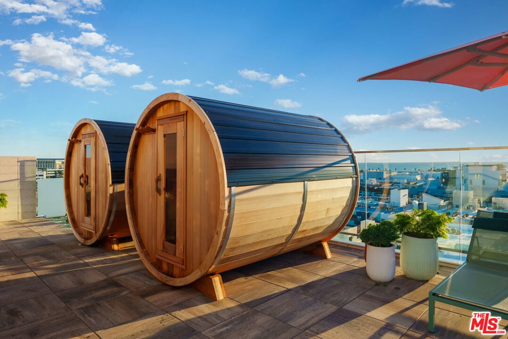 700 Broadway | Santa Monica's Most Glamorous Penthouse Collection | Penthouse 815 at 700 Broadway is a rare corner three-bedroom, two-bath residence offering refined luxury, architectural volume, and an expansive private terrace with partial Pacific Ocean views. Soaring 10-foot ceilings, wide-plank flooring, and dramatic floor-to-ceiling glass create a light-filled sanctuary with seamless indoor-outdoor flow. The chef's kitchen is a study in sophisticated design, appointed with Calacatta Monet marble countertops and full-height backsplash, custom oak cabinetry with integrated under-cabinet lighting, and a full suite of Thermador Smart Home appliances, including a wine refrigerator and microwave drawer. Spa-caliber bathrooms feature oak vanities, Cielo quartzite counters, Taj Mahal porcelain tile, and finely crafted Dornbracht fixtures, evoking a serene, resort-inspired atmosphere. Thoughtful upgrades include motorized roller shades, Nest thermostat, Lutron dimmable lighting, customizable Elfa closets, side-by-side LG washer and dryer, and secure keyless entry. Residents enjoy an unrivaled lifestyle with a 24/7 attended lobby boasting soaring double-height ceilings, on-site valet parking, and premier retail including Equinox Fitness Club and an upscale grocer. Amenities rival those of a private members' club, featuring a lush 3/4 acre landscaped park with fire pits and outdoor dining, co-working lounge and library, entertainment lounge with bar and demonstration kitchen, indoor-outdoor fitness pavilion, speakeasy lounge with poker room, bowling alley, private screening room, pet spa, and a resort-style pool deck with 75-foot lap pool, hot tub, cold plunge, barrel saunas, reservable outdoor entertaining suites, and a rooftop dog run.