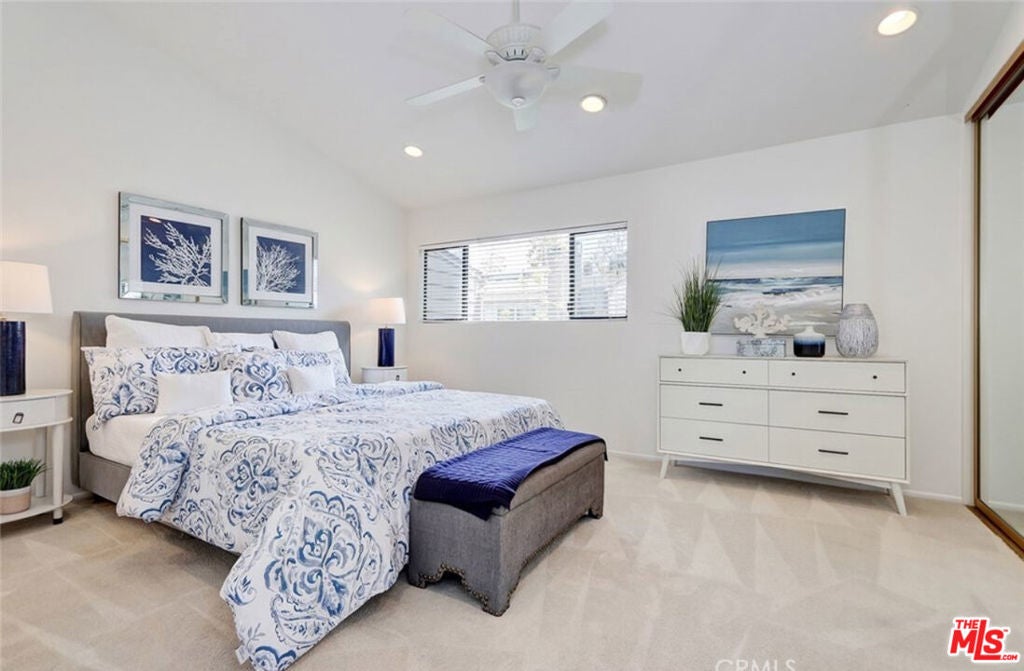 Perched in the sought-after Hollywood Riviera, this light-filled end unit captures ocean views stretching from the rolling hills of Palos Verdes all the way to Malibu and Point Dume on a clear day. Natural light floods the home thanks to the soaring ceilings and expansive west-facing windows. The main living room area is a warm and cozy space and just adjacent you can step outside to the private patio to savor your morning coffee or unwind with sunset cocktails.The open-concept layout features a kitchen with granite countertops and stainless steel appliances, flowing seamlessly into a formal dining area ideal for hosting. A dedicated office/den with built-in cabinetry creates a perfect flexible space that can be dedicated to remote work, studying or a cozy media space. Upstairs, the primary suite feels like a true retreat with vaulted ceilings, ocean vistas, and its own private patio. A spacious walk-in closet and ensuite add comfort and luxury. A second bedroom with vaulted ceilings and its own bathroom sits just across the hall, along with convenient upstairs laundry.Located close to one of two community pools and spa areas, this home is part of the beautifully maintained Village Palos Verdes complex, offering resort-style amenities and a vibrant village atmosphere. Enjoy sunny afternoons by the pool, dinner in the Village, and end your day watching the sunset from your own private sanctuary. The large two-car garage provides ample storage, making coastal living effortless. Don't miss your chance to live the Riviera lifestyle.