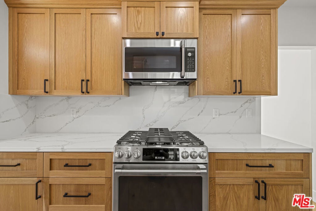 Welcome to this exquisitely reimagined 1920s Toluca Lake Spanish. This beautiful residence captivates with timeless curb appeal complete with lush greenery, a gated driveway, and a patio shaded by mature trees, creating a serene and private entry. The home welcomes you with a grand formal living room, showcasing oversized picture windows that bathe the space in natural light, elegant coved ceilings, and a charming brick fireplace with a classic mantel. An arched passage leads to the formal dining room overlooking the verdant front yard and flows effortlessly into the bright kitchen. The chef's kitchen boasts a brand new appliance package, cabinetry, and spacious countertops. The generous primary suite offers direct backyard access and a private bathroom thoughtfully updated with meticulous attention to detail. The generous guest bedroom includes a cozy sitting nook, sliding doors opening to the backyard, and a beautifully updated ensuite bathroom. Step outside to an inviting large deck beneath cafe lights- an ideal setting for entertaining and al fresco dining during warm evenings. Additional amenities include a convenient laundry room adjacent to the kitchen and a detached two-car garage behind the driveway gate. Located in the coveted Rio Vista School District and just moments from Tujunga Village and Toluca Lake Village, this unique property delivers an exceptional blend of classic character, modern upgrades, and flexible living in one of the area's most desirable neighborhoods. Welcome home! AVAILABLE TO LEASE BOTH IN TANDEM WITH THE GUEST HOUSE AND SEPARATELY. THE PRICE OF THIS LISTING IS FOR THE 2BD/2BA PROPERTY ONLY.