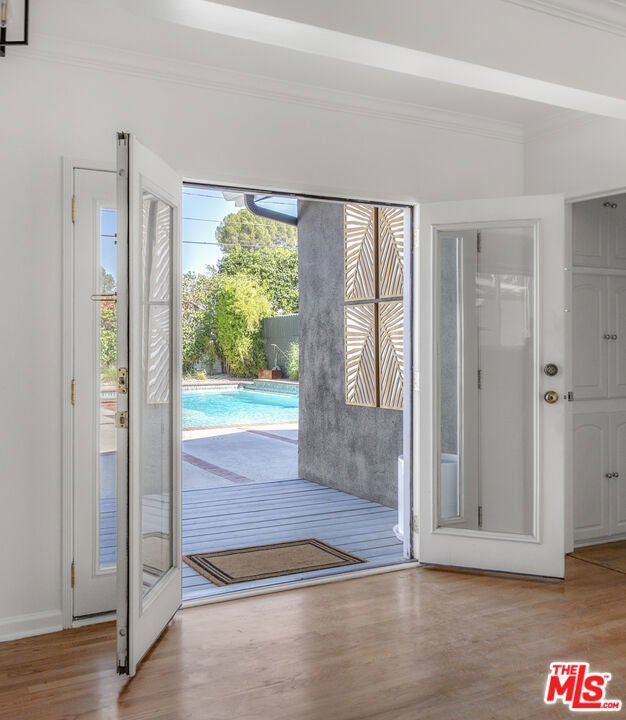 Welcome to this entertainer's paradise in the heart of Valley Village! This beautifully updated home boasts over 1,600 sq ft of living space with 3 oversized bedrooms and 2 full baths. Step into the spacious living room featuring a striking open brick fireplace, recessed lighting, and newly refinished oak floors. The open dining area and remodeled kitchen, complete with stainless steel appliances, oak cabinets, and ample stone countertops, make entertaining a breeze. The guest bathroom has been recently remodeled, with the master offering honed granite counters and a standalone shower. Additional highlights include crown molding, dual-pane windows, French doors, a wood deck, custom paint, and a newer stackable washer/dryer unit. Tenants can also enjoy access to a remodeled, detached 2-car garage and a refrigerator. The expansive 7,822 sq ft lot includes a desert-motif front yard and a stunning backyard with a pool and hot tub. Close to NoHo West, shops, restaurants, and more, this home is a renter's dream!
