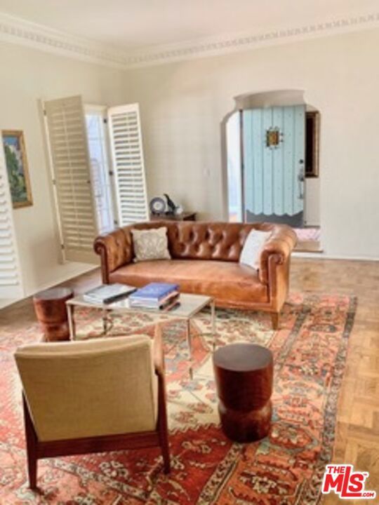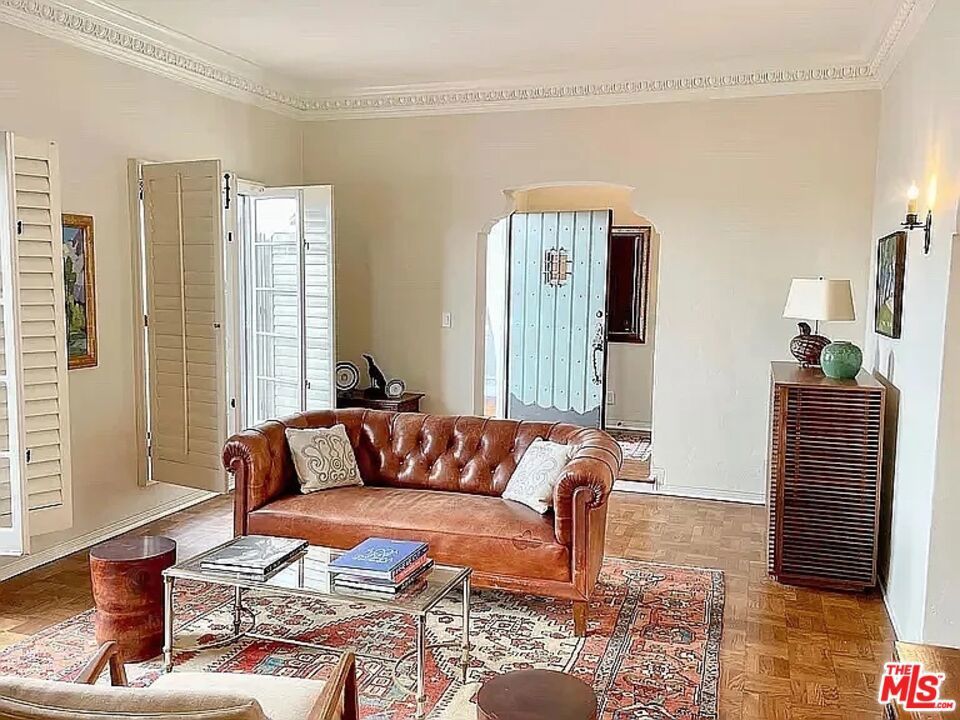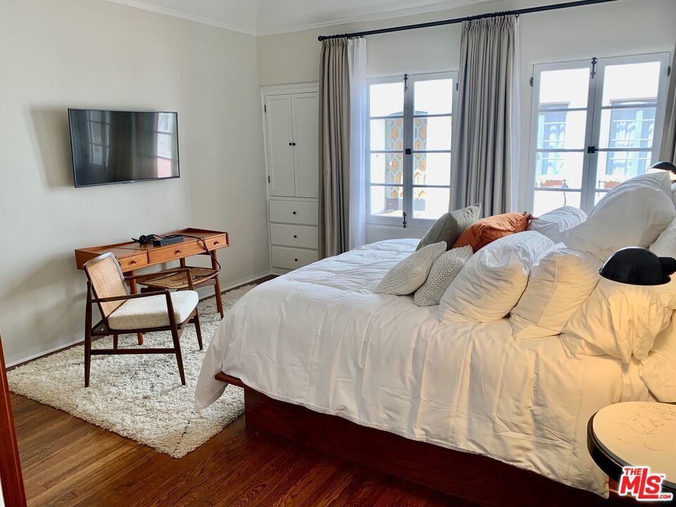 Apartment 106 has a distinct glamorous charm. Rich with historic detail..The living room has tall wooden shuttered French windows with the original faux fireplace at the end. The living room & the large master bedroom look out upon the gorgeous courtyard. The second bedroom makes a perfect office or beautiful guest room. It has a chefs kitchen and a formal dining room with French doors on the south. It's a little masculine & sexy...a very handsome apartment. * El Pasadero is a restored and renovated historically designated building. It is luxurious, gated, peaceful and private, and sits in the heart of West Hollywood's most romantic historic district. Every original architectural detail of the building has been meticulously restored inside and out. The building also has all new modern infrastructure. All units have beautifully tiled new kitchens and baths. The kitchens have top of the line Thermador appliances and washers and dryers. There is central A/C and heat and private back stairs to the gated parking garage which contains several high speed electric car charging stations. It comes with one parking space. Unfortunately, this is a strictly NO PETS building.