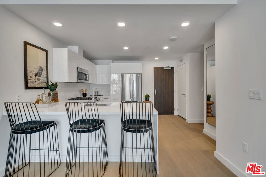 This modern 1BD/1BA apartment home is available immediately! Experience elevated living with designer interiors featuring stainless steel LG appliances, gas stove, European cabinetry with integrated lighting, plank-style wood flooring, floor-to-ceiling windows, and Eco bee SmartHome thermostats. Enjoy the convenience of an LG washer and dryer, keyless entry, spacious closets with custom storage, 9'4" ceilings, and private balconies that blend comfort with sophistication.Community amenities include travertine elevator lobbies, stone accent walls, corridor wood flooring, and stainless-steel entry hardware. The center piece is a one-acre rooftop retreat with a sparkling pool, city view, and lush open-air lounging spaces perfect for relaxing or entertaining. Ideally located in the heart of Los Angeles, this exceptional address connects you to the vibrant culture, dining, and energy that define modern urban living. Photos may include similar model units and virtually staged renderings.