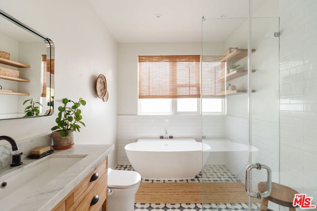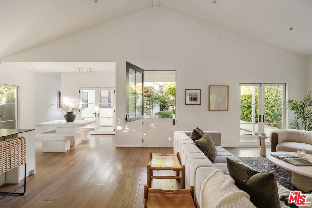 In the heart of Atwater Village, this Modern Farmhouse by Allprace sits on an oversized lot, offering thoughtful design, generous proportions, and a peaceful connection to its surroundings. Set back from the street and framed by mature plantings, the home's warm presence and gracious flow create a true retreat within the neighborhood. Inside, custom Dutch doors lead to a dramatic great room where soaring ceilings, a board-form concrete fireplace, and built-in window seats shape a light-filled, inviting space. The adjoining kitchen is both refined and functional, featuring sleek cabinetry, leathered stone counters, and a suite of high-end appliances, including a built-in Gaggenau refrigerator and Bertazzoni pro range. Nearby, a spacious family room/dining area with custom French doors opening to the outdoors provides flexible space for everyday living, entertaining, or quiet moments at home. Down the hall, a private bedroom wing includes three bedrooms thoughtfully grouped together. A serene primary suite anchors this wing with its generous walk-in closet, marble dual vanity, walk-in shower, and direct access to the backyard. The two additional bedrooms share a beautifully finished hall bath with dual resin vanities and fresh, modern tileideal for family, guests, or office needs. Set apart from the main wing, a second primary suite offers added privacy with its vaulted ceiling and elegant marble-clad bath featuring a freestanding stone resin tuban indulgent retreat perfect for extended stays, multigenerational living, or a quiet workspace. Outside, the expansive yard is a peaceful sanctuary with room to gather, garden, and entertain. Multiple areas for lounging or dining invite a seamless indoor/outdoor lifestyle. A jumbo finished garage provides even more flexibility, ideal as a studio, creative workspace, or home gym. With all-new systems and mostly new construction, the home blends modern comfort with enduring style. Moments from Atwater's cafes, boutiques, trails, and the river path, it offers a rare combination of scale, privacy, and location in one of Los Angeles' most treasured neighborhoods.