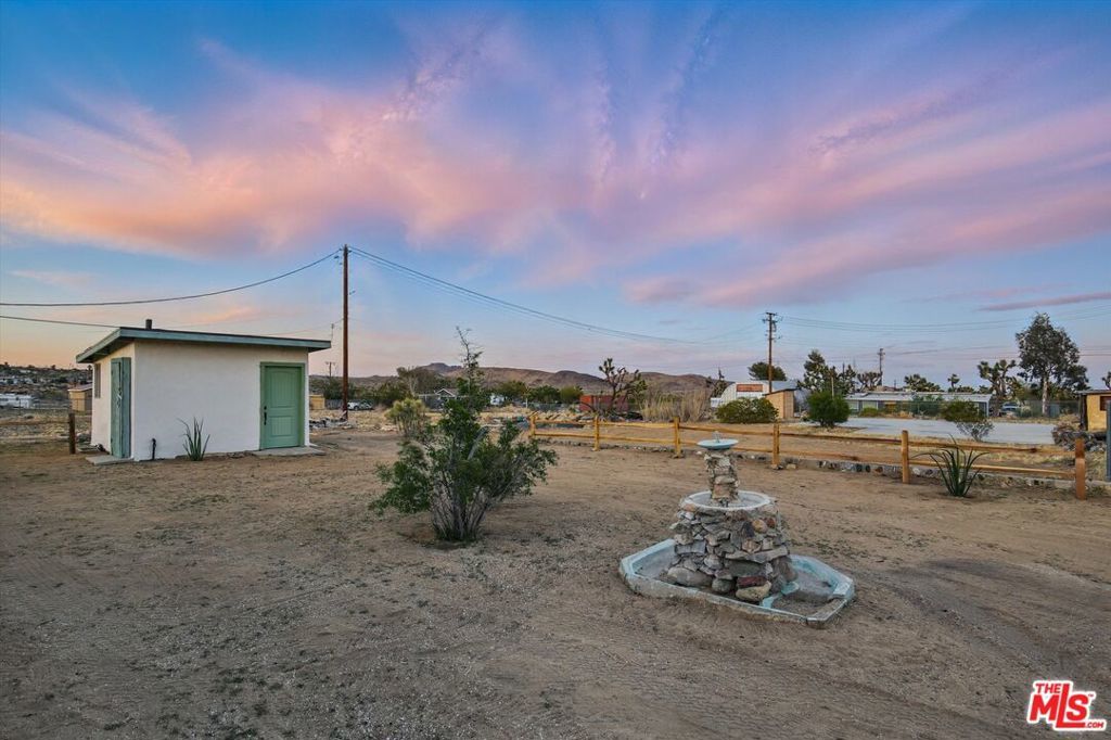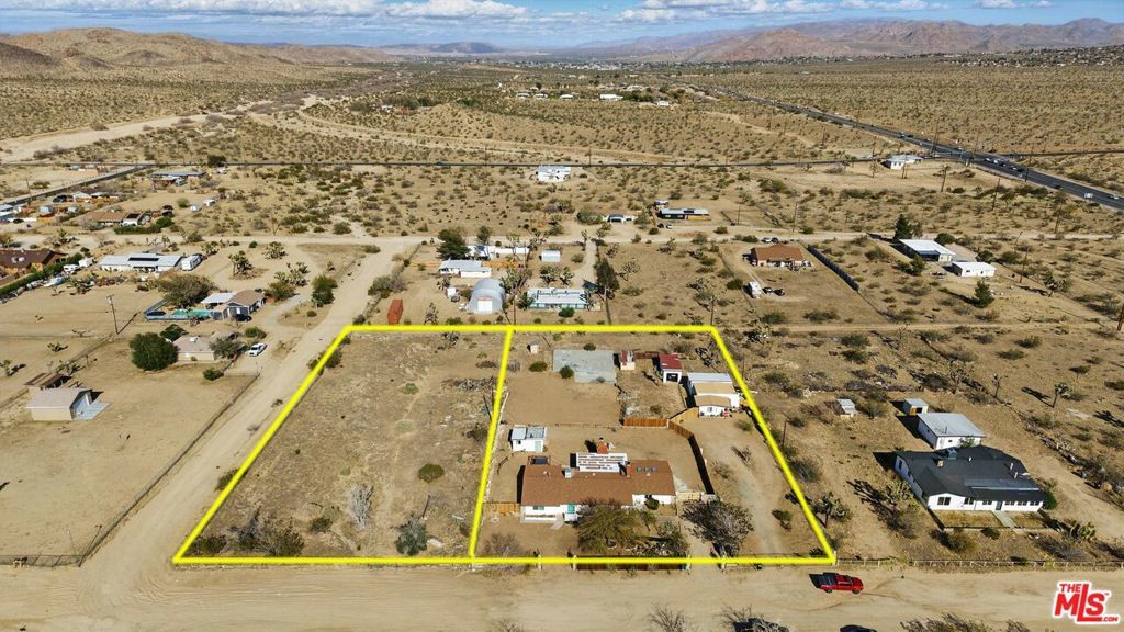 ATTN: Owner Users Investors.Nestled just minutes away from vibrant Joshua Tree village and breathtaking National Park, this midcentury ranch compound is a rare find! With two separate houses , separate driveways, several outbuildings, it's perfect for someone looking to invest or create a relaxed live/work retreat. set on a generous 1.25-acre lot, plus an extra 1.25 acres of fenced land with power, valued at $80k. you've got plenty of room to build or just soak up the natural beauty.The main house is flooded with natural light, offering a spacious open floor plan with two cozy living areas, each with its own wood burning fireplace. One even has a spit BBQ. The kitchen is a cook's dream with stainless steel appliances, new butcher block countertops, and a chefs sink. You'll find tons of built-in storage, a fully equipped laundry room, and over 1,900 square feet of living space. There's also an extra 650-square-foot suite that's ideal for a main bedroom, art studio, or guest area, featuring its own entrance, large walk-in closet, and a beautifully remodeled bathroom. You've got all the comforts covered with natural gas for cooking and heating, radiant electric heating, and fireplaces for winter, plus evaporative cooling and AC for the summer months. Enjoy outdoor living with two patios, a lovely shaded front yard and a pergola in the backyard for entertaining.The second house is a charming 1,000-square-foot space with two bedrooms, a remodeled bathroom, and a modern eat-in kitchen with access to a private backyard. It's tucked away from the street and includes an oversized one-car garage, making it a perfect rental unit.The outbuildings are ideal for storage or creative projects; one cabin even comes with electricity and an underground wine cellar. The entire 1.25 acres is fenced with multiple gates and has two driveways, including one that leads to the backyard and RV parking. There's also a large concrete slab ready for new possibilities like a garage or horse stables. Plus, it's a horse-friendly property and includes its own water well for irrigation, which is a rare find in town. . Each house has separate meters, privacy fencing, and individual driveways and parking areas, making it convenient if you want to rent them out.It's not common to come across a property in Joshua Tree/Yucca Valley with such original character and features. This place is packed with potential for you to make it your own or simply enjoy everything it already offers.