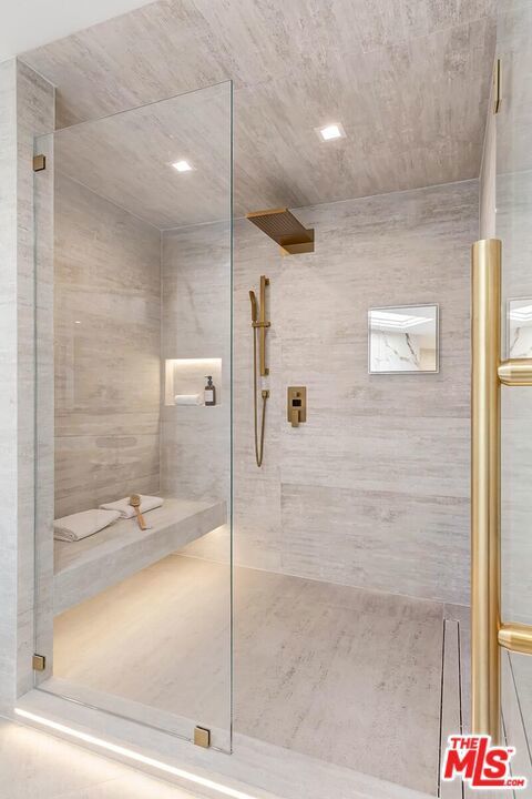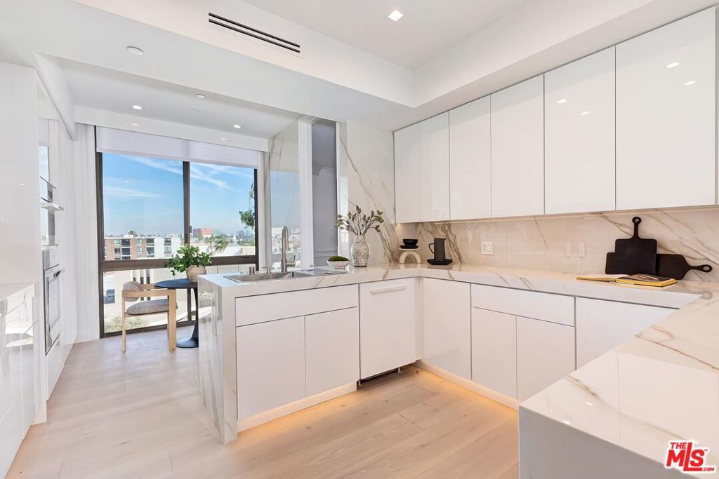 This newly remodeled 2-bedroom plus den Penthouse offers contemporary design and modern comfort in the prestigious IV Seasons Condominiums, located on a quiet, tree-lined street in Beverly Hills. Every detail has been thoughtfully updated, showcasing brand-new finishes throughout. Wide plank oak floors, soaring ceilings, and expansive floor-to-ceiling windows fill the space with light and create a sleek, open atmosphere. An expansive terrace provides a seamless indoor-outdoor flow and serene tree-top and city views. The reimagined gourmet kitchen features sleek top-of-the-line appliances, custom cabinetry, and a cozy breakfast area with balcony overlooking lush greenery and city views. The primary suite exudes a private retreat, complete with two large custom walk-in closets and a brand-new five-star hotel-inspired bath featuring designer finishes, a soaking tub, and a large glass-enclosed shower. The spacious second bedroom suite includes its own custom closets and a modern en-suite bath. The versatile den offers space for a home office, media room, or additional living area, and a fully redesigned laundry room adds convenience. Residents enjoy luxury amenities, including 24/7 doormen, valet parking, a newly updated pool and spa, gym and ample storage. This all in an ideal Beverly Hills location!