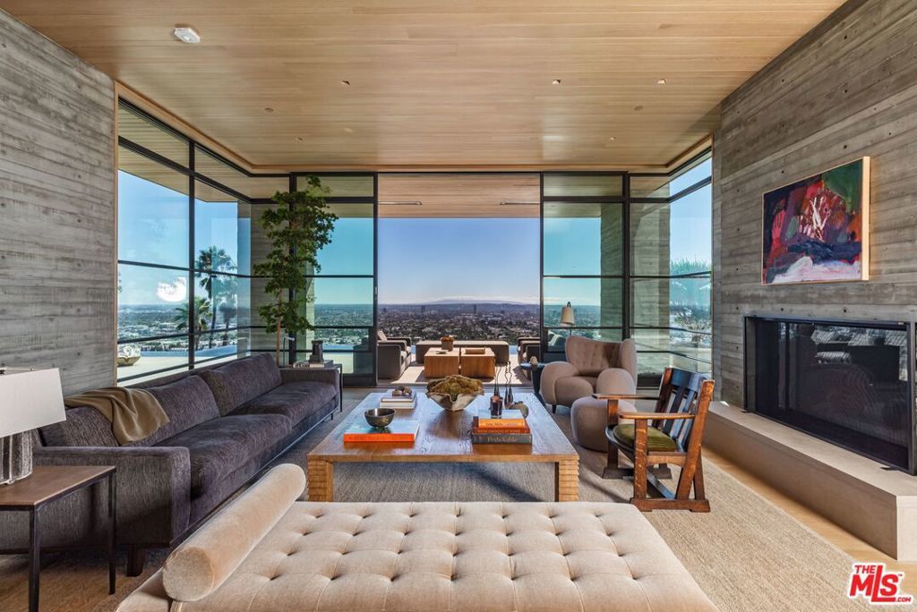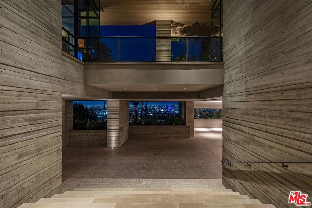The Hollywood Hills House designed by Scott Mitchell Studio is a monumental and versatile modern villa rising out of the Hollywood Hills. The layered and terraced house - designed for living and entertaining - embraces views that span L.A.'s cityscape from east to west and out to the Pacific Ocean. This property is set on Los Angeles's most iconic promontory, formerly owned by Howard Hughes, that extends over one acre with no neighbors on either side and 270 views of the entire city. Set at the 50-yard line of legendary hot spots Chateau Marmont, Tower Bar, and the Hollywood Bowl, the energy of the city can be seen and felt from the estate's peaceful privacy. Additionally, the property borders state land so no building can be constructed behind it, and it has private access to hiking in the famous Runyon Canyon. The form of the house follows a rigorous commitment to rich, organic materials and light. Grand outdoor decks provide seamless indoor and outdoor living. With expansive volumes over three floors, the tranquil and rooted hillside haven exudes a sense of balance, repose and a seamless connection to the natural landscape. A secluded driveway inclines to an impressive, cobbled motor court that can accommodate 12 or more cars and is nestled under the house with far-reaching views across the city. From there the villa's grand and wide staircase begins, following the form of the building, passing a large-scale, vertical water feature to the landscaped north terrace and walkway, where native plantings and open fires frame the principal steel window and door entry system. On entering, to the east is a luxurious study and to the west, an open living room with fireplace and views across the city that flows into the dining room and on to the kitchen and family room, where floor to ceiling glass sliding doors open seamlessly connecting indoor and outdoor and framing wide urban vistas. On the exterior, wire-brushed narrow Itauba deck boards and an elegant dark stone clad infinity pool and hot tub are flanked by a sunken fire pit and seating area. A stand-alone pool bar and lounge is connected by a covered breezeway adjacent to an outdoor seating area. Walkways and terraces continue around the house incorporating native oaks and under-storied plantings that are composed with elements of fire and water. On the upper level, the primary bedroom wing comprises not only the primary bedroom but separate bathrooms and dressing rooms, and a study that can be isolated from the rest of the suite by a discreet pocket door system. On the lower level is a recreational zone with state-of-the-art screening room, billiards room with lounge area, and a bar. These program elements are organized around a gracious distribution foyer which doubles as a secondary point of entry to the house and leads to the motor court, which can be converted into a conditioned, modern ballroom. The house was built over a 10-year period, and new codes have been created since its construction, preventing a home of this type ever being built again in the Hollywood Hills. The house is constructed with $30 million of solid poured-in-place board-formed concrete with three feet thick concrete walls, and over 100 caissons that go 100 feet deep. The hard cost of the construction is $3,500 a square foot not including the land. The project engaged JRC Group, Inc., arguably the best builder in the city. The house includes a multi-million-dollar Jada steel door package, custom millwork, and audio/visual.