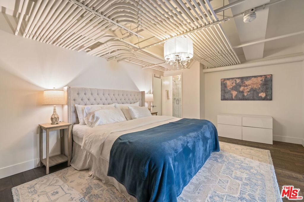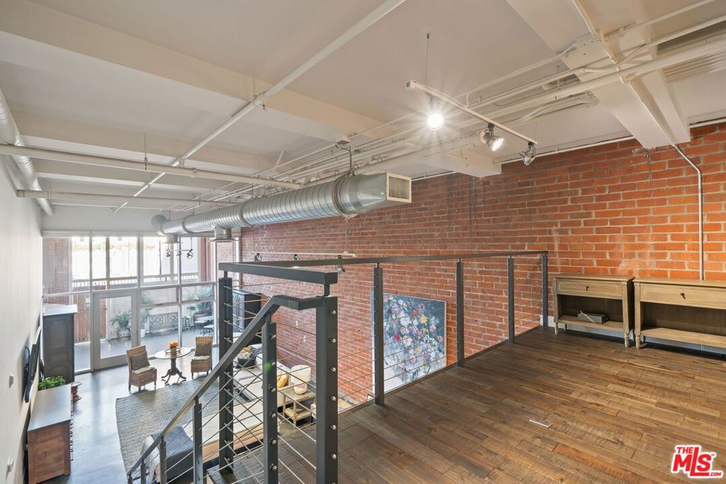 Welcome to Gallery Lofts, a live work community located in the heart of Arts District. This private oversized loft creates the perfect creative sanctuary for artists, musicians, and other like minded individuals. The expansive living area features soaring 16 foot ceilings, polished concrete flooring, an exposed brick wall, and 200 sf private patio that is not included in the total interior square footage. A rare amenity that offers so many possibilities. Also on the first floor is a spa-like full bath and gourmet kitchen with granite countertops, stainless steel appliances, and plenty of built in storage space. Walk up the floating staircase to the primary with bright en-suite bath, and an an option for extra privacy provided by the sliding barn doors. Before entering the primary there is ample space on the mezzanine for a home office or exercise area overlooking your spacious lower level. Experience all of Arts District's bustling galleries, restaurants, and nightlife. Community features gated security entrances, outdoor atrium, fountains, and a secure mailroom. One assigned parking space with convenient and direct access to the private patio entrance. HOA dues include high speed internet, water, gas, trash, sewer, and community security system.