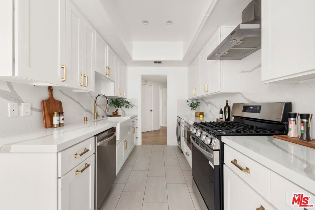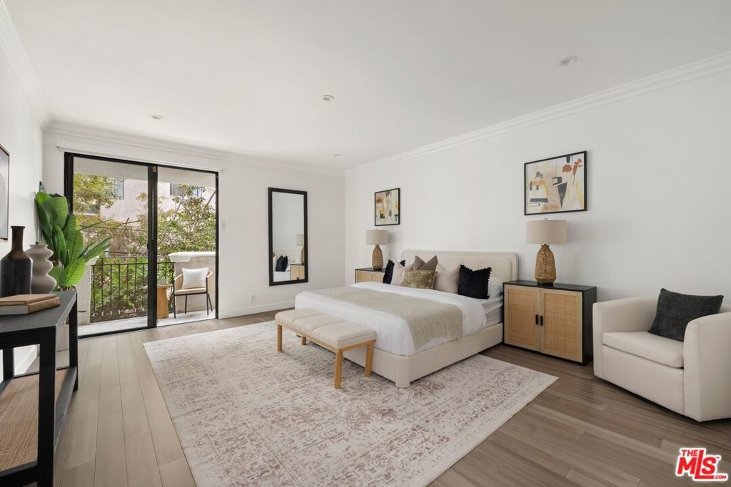 Incredible value awaits! Presenting this bright and elegant, beautifully updated Westwood condo, complete with stylish finishes and materials throughout. Enjoy multiple balconies with treetop views, each accessed by the living, dining, and primary. In the living room, discover spaces awash in light, a wood-burning fireplace with traditional mantle, and wet bar adjacent to the formal dining room. The kitchen is expertly appointed with quartz countertops and backsplash, a farm sink, and top-notch appliances including warming drawer and wine refrigerator. The spacious primary opens to a private balcony and includes an en-suite bath with dual-sink vanity, an abundance of cabinetry, and separate soaking tub and rainwater shower. The walk-in closet contains custom built-ins for maximizing use of space. The secondary bedroom and bath are also updated with modern finishes, including marble-lined walls and showers in all bathrooms, and in-unit laundry features side-by-side washer and dryer. Building amenities and conveniences include secured, controlled-access subterranean garage with two tandem parking spots. Experience a fresh, coveted lifestyle in a central location, convenient to UCLA, freeways, Santa Monica, Sawtelle, Westfield Century City, Westwood Village, and the many wonderful entertainment, dining, and shopping options of the Westside.