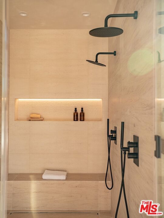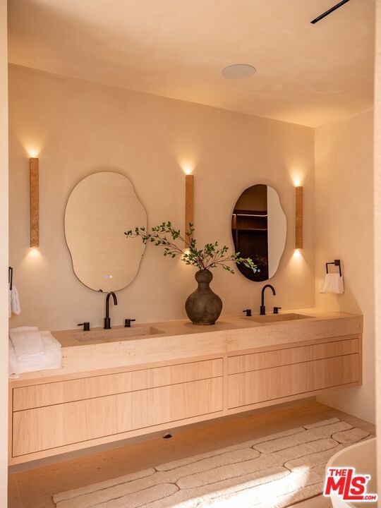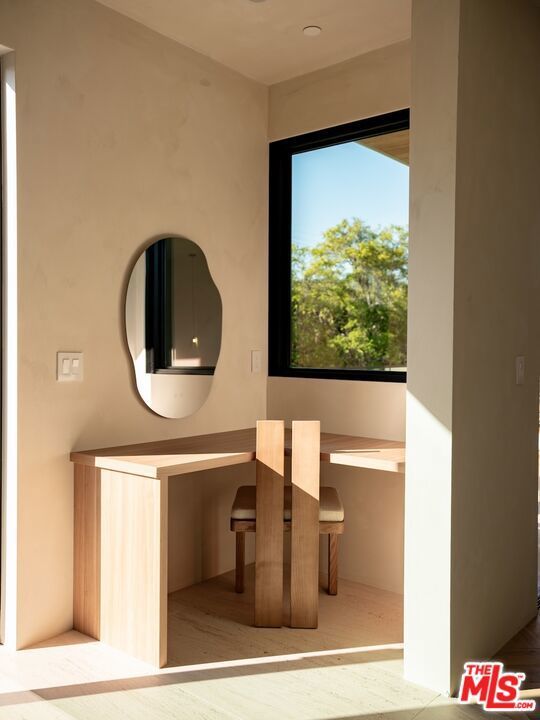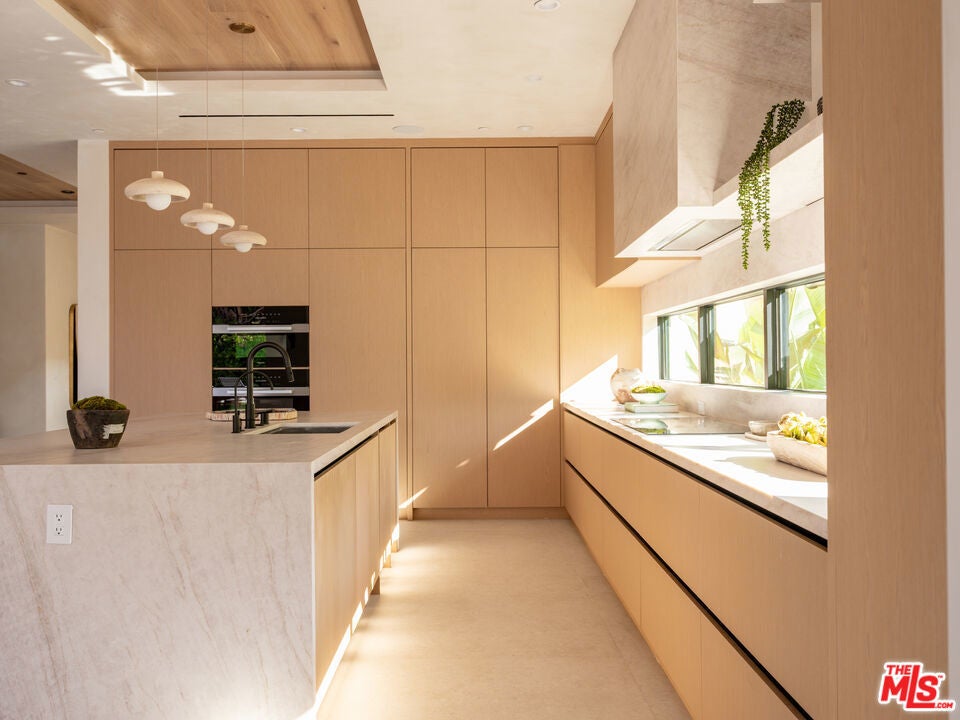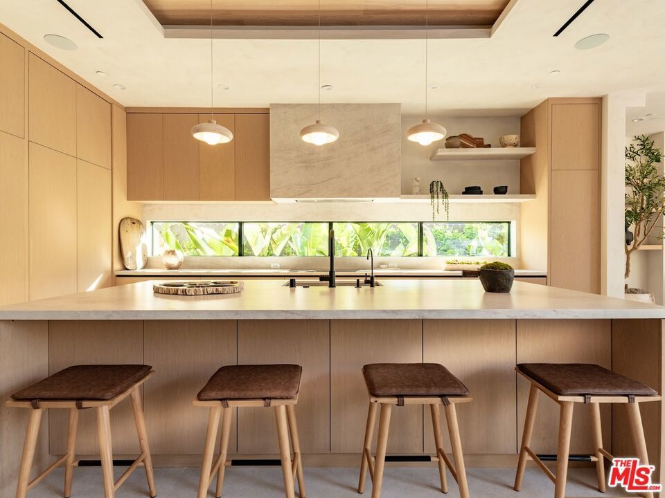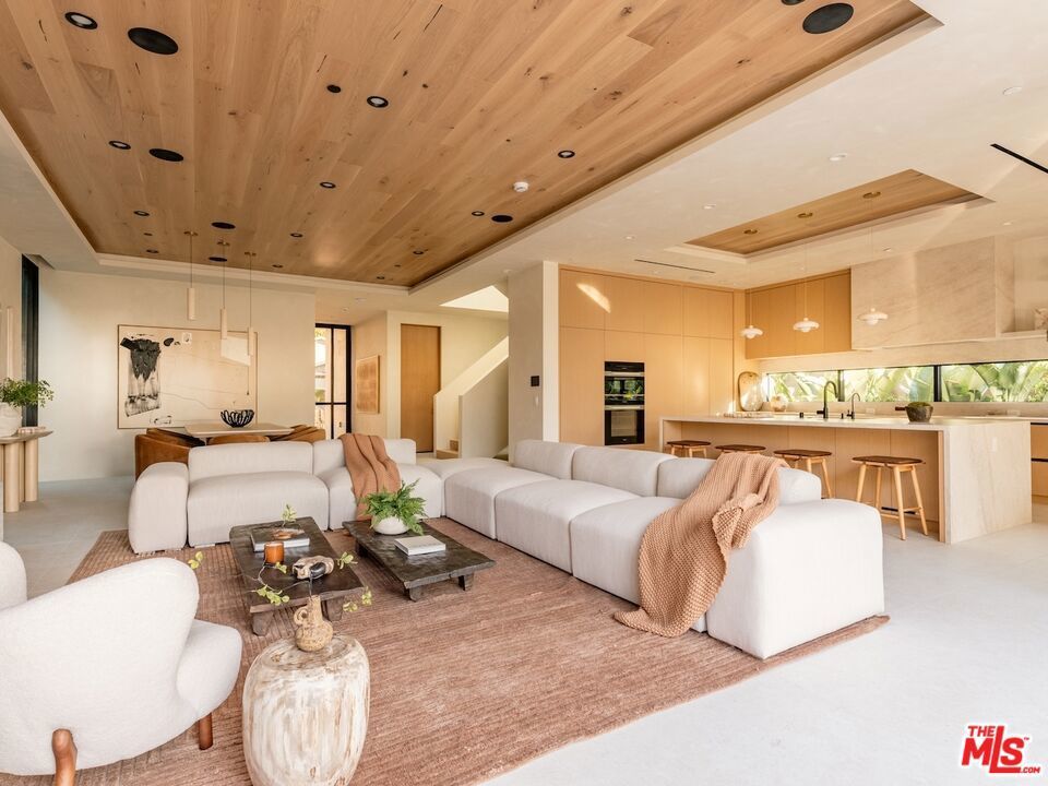 Stunning new construction in one of West Hollywood's most desirable pockets, this 5-bedroom, 5.5-bath modern residence blends warm natural materials with thoughtful design and effortless indoor-outdoor living. The open-concept main level is anchored by expansive travertine stone floors and a stunning living and dining area that flow seamlessly to the backyard through large sliding glass doors.The gourmet kitchen is outfitted with sleek Miele appliances, custom cabinetry, and generous prep space, opening to the yard for easy entertaining. A chic powder room showcases dramatic Calacatta Viola stone, while each ensuite bathroom is finished in beautiful limestone, creating a cohesive, elevated feel throughout the home.Outside, the private backyard is an entertainer's dream, featuring a sparkling pool, jacuzzi, sunken fire pit lounge, and built-in BBQ perfect for relaxed evenings or hosting friends. A full smart home system and built-in speakers add comfort and convenience at every turn.Luxurious, functional, and designed for today's lifestyle, this home offers a refined take on West Hollywood living.