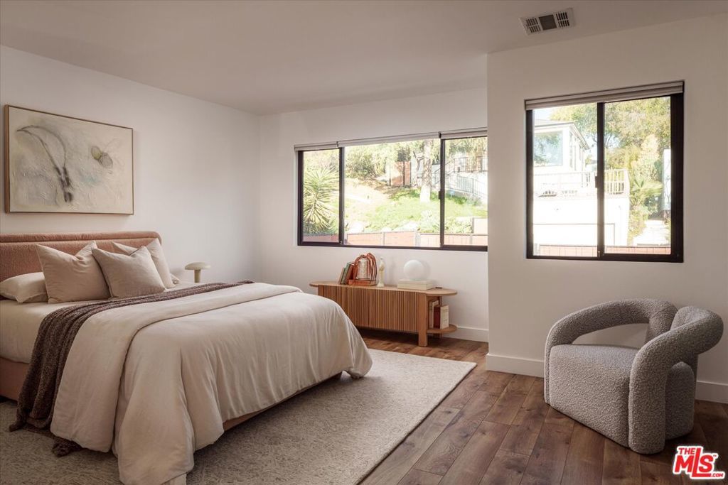 Introducing Vista Gloriosa, a unique and dreamy Mt. Washington retreat, where the city twinkles like candlelight and the sunsets blush just for you. With panoramic views that sweep from sunrise to the shimmer of downtown and front-row seats to the Friday and holiday fireworks at Dodger Stadium, this is not just a home, it's an opportunity to fall in love every day. Inside, sophistication meets soul. Greet guests at the formal living room entry, but take just a few steps down to the main living level featuring 7-channel Dolby Atmos built-in speaker setup. Living room level offers the epitome of California indoor/outdoor living--a modern minimalist kitchen boasting stainless appliances, formal dining, two sets of cantilever doors to an entertainer's deck with insane views, plus large family room with fireplace, dry bar and powder room. Movie lovers enjoy a 9-channel Dolby Atmos furnished home movie theater, also accessed on main level. Upstairs, the primary suite is your private sanctuary, featuring an oversized spa shower preplumbed for 2 showerheads, with peekaboo Hollywood-sign views, and up a few steps, 2 more ample guest rooms, and an additional bath. In the pool level, a permitted bonus room with its own entrance, ideal for entertaining and guests. Enjoy the shimmering new saltwater pool and spa, with turf surround, outdoor sound system, outdoor tv connections, cafe lights, and plenty of spaces to lounge. Mature avocado, orange and lemon trees complement your fun-filled daytime BBQ, and romantic nighttime moments await. Solar PV system means virtually no electric bill, EV charger hookup in garage, plus smart home features throughout - voice controlled automated lighting, locks, thermostats. Whether you're entertaining under the stars, soaking in the silence of a solo swim, or watching the city celebrate in the distance, this is the kind of home that captures hearts and holds them. Welcome home!
