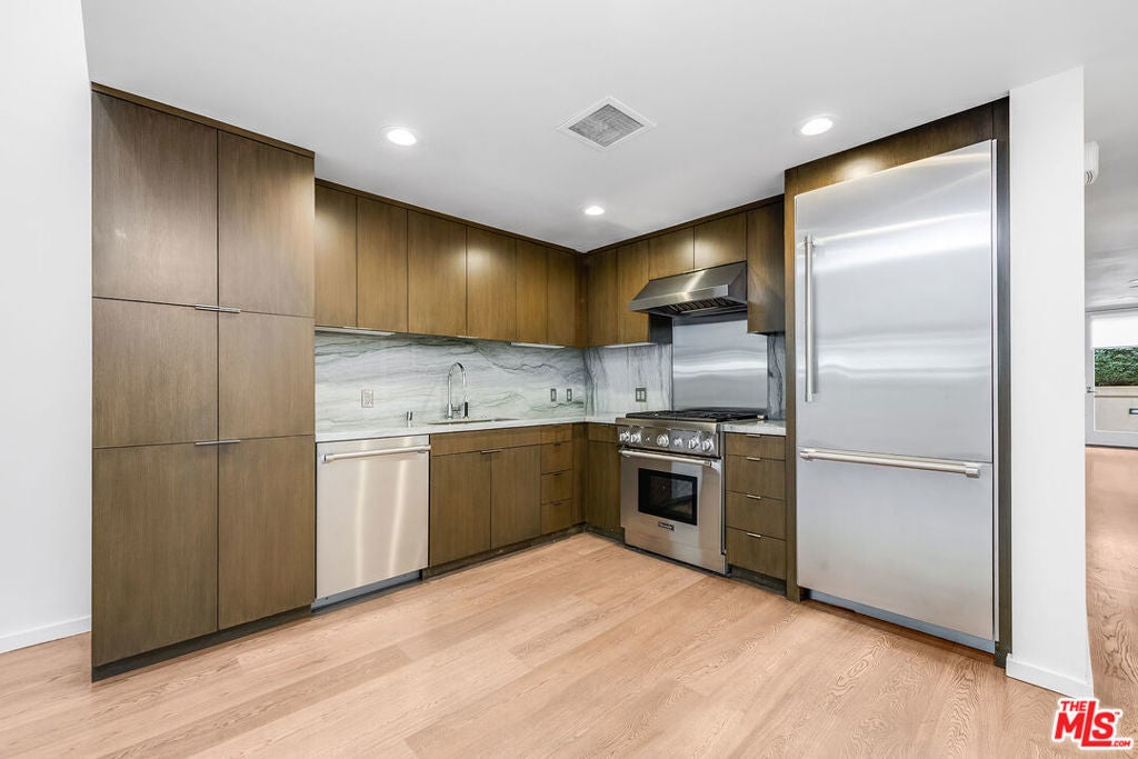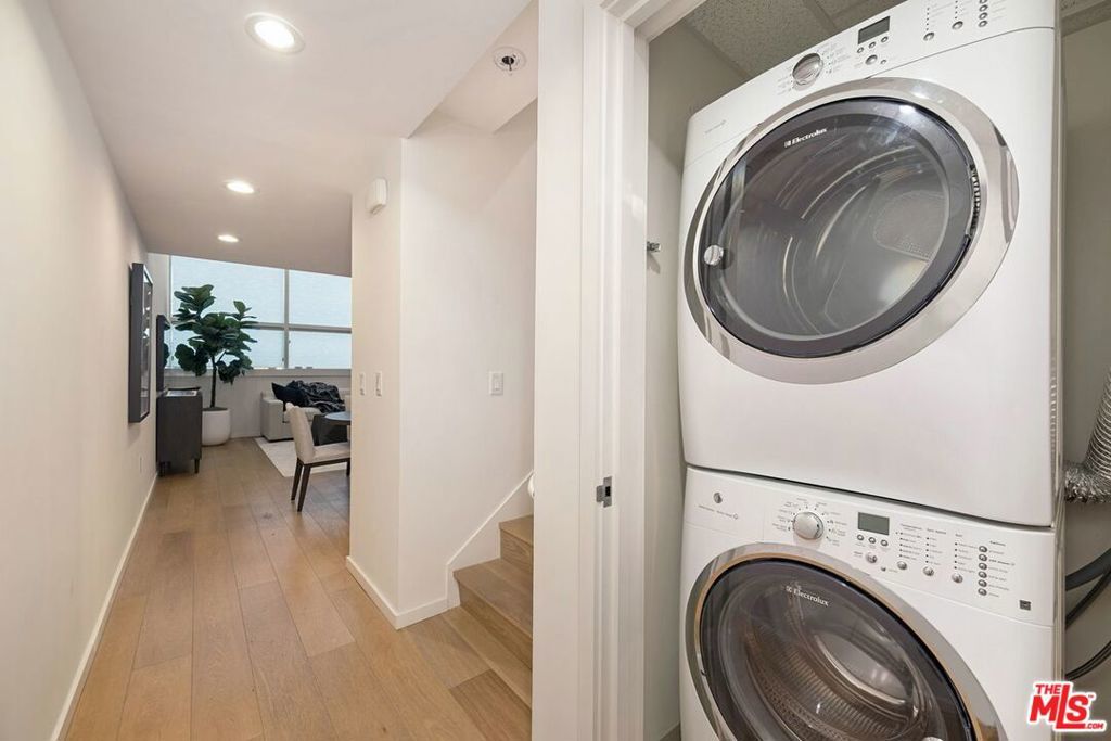 The perfect lock and go home in amazing location, just steps from the beautiful Santa Monica beach and walking distance to all the shopping and dining Santa Monica has to offer. Beautiful 2 bed, 2 bath two-story townhouse in the Waverly building, designed by Marmol Radziner and developed by award-winning developer, Related California. This residence is on the first floor and features hardwood floors, lots of natural light and a main floor bedroom. The great room is perfect for entertaining with two-story ceilings and an open gourmet kitchen featuring Oak cabinets, Quartzite countertops and Thermador appliances. The spacious upstairs primary suite offers a large walk-in closet and spa-like bath with Quartzite counters and tile accented shower and soaking tub. The unit also includes an interior washer and dryer as well as 2 indoor side by side parking spaces one of which has been equipped for EV charging station and owner's storage space. Enjoy utmost convenience with all the amenities the building has to offer, including a fitness center, 24-hour concierge, pet spa and lounge with full kitchen, BBQ out door seating and ocean views for your own private dining events. No amenity has been overlooked - this is the perfect spot to call home!