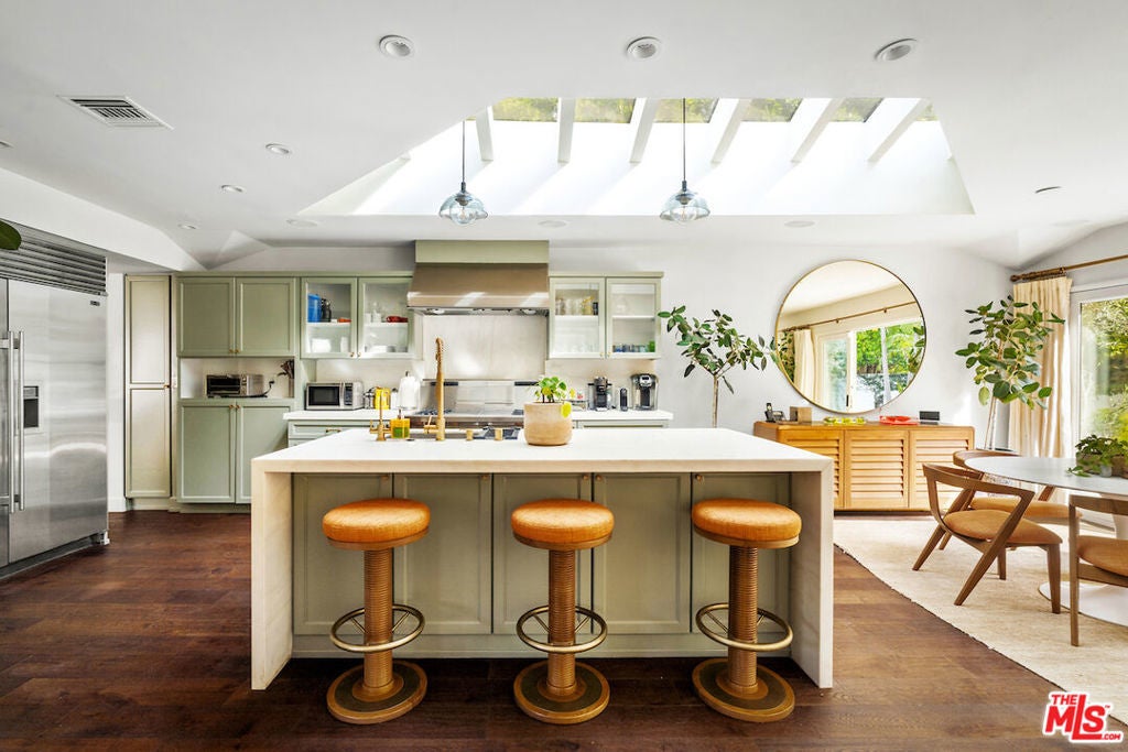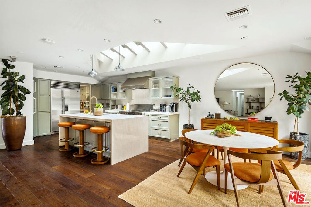 Privately tucked away behind gates and mature landscaping in one of the best locations in the Bird Streets is this stunning residence. Done to the nines; an open concept formal living room seamlessly adjoins the chef's kitchen. Muted green cabinetry is the perfect compliment to the stone waterfall island, stainless steel appliances, and hardwood floors. Raised ceilings with skylights welcome in an abundance of natural lighting in addition to the sliding doors that finely blend indoor-outdoor living. The luxurious primary suite offers dual sinks, soaker tub, and a shower with a built-in sauna. Two additional bedrooms complete this functional floor plan. All of this 8,100+ SqFt lot has been meticulously transformed into an entertainer's oasis. An outdoor grill and dining area are ideal for enjoying a meal al fresco in addition to the wet bar, wine fridge, outdoor tv and heaters in the covered cabana. Enjoy the California sun lounging on the flat grassy pad and swimming in the generous pool and spa. Additional features include a pool house with one bedroom and one bathroom, an oversized, grass paved, motor court and two care garage.