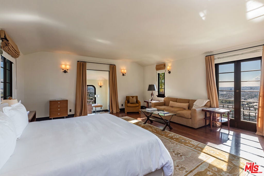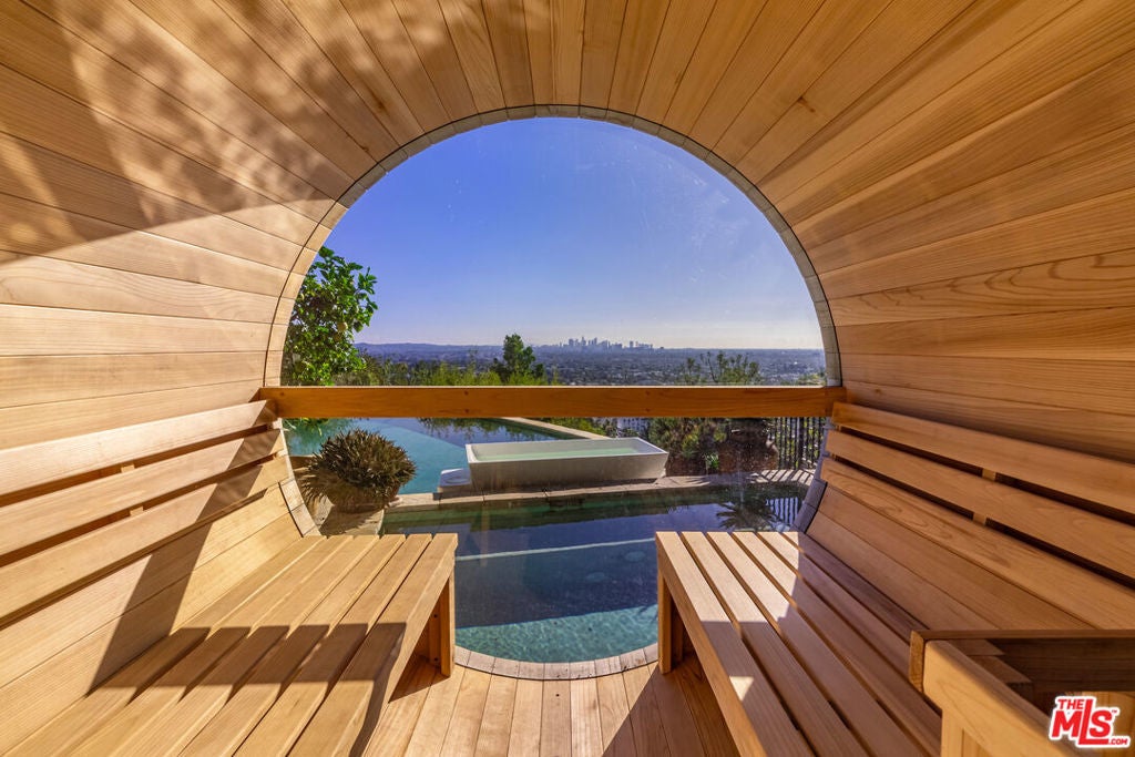 Perched above the Sunset Strip, this impeccably restored 1926 Spanish Revival by architect Robert Finkelhor commands cinematic, uninterrupted views from downtown to the Pacific. A timeless Spanish facade opens to warm, modern interiors defined by hand-textured plaster, sunlit rooms, and beautifully preserved architectural details. Gracious living and dining spaces flow to multiple terraces that frame the sweeping panoramas and seamlessly extend living outdoors. The residence offers six bedrooms and five-and-a-half baths, including a serene primary suite with sitting room and marble bath. A separate flex outbuilding serves as an ideal studio, gym, office, or creative workspace. Wellness amenities include a sauna and cold plunge, while a saltwater pool and spa sit against the home's dramatic city-to-ocean backdrop, surrounded by mature landscaping and private outdoor areas. A serene, private retreat with an effortless, refined calm just moments from the Chateau Marmont, Sunset Tower, and the energy of the Sunset Strip.