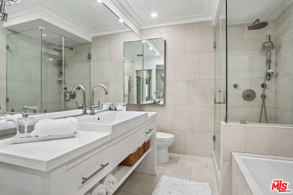 Step into luxury with this impeccably remodeled 1-bedroom, 1-bathroom condo, complete with a dedicated separate office space perfect for today's work-from-home lifestyle. Every inch of this residence has been thoughtfully redesigned with high-end finishes and contemporary elegance in mind. The open-concept living area is flooded with natural style large tile flooring, LED recessed lighting, and clean architectural lines. The custom kitchen is a showstopper, boasting sleek modern countertops, European-style cabinetry, with a waterfall island, and top-of-the-line stainless steel appliances, including a subzero refrigerator. Primary bedroom with a huge closet with all custom built-ins. The spa-inspired bathroom features floor-to-ceiling designer tile, a large vanity, and a glass walk-in shower with luxury fixtures including overhead rain shower. The separate office is ideal for a quiet workspace with all custom cabinets, perfect for a creative. Additional highlights include in-unit laundry, extended kitchen counter tops, built-in throughout living room and additional curated design details throughout. Located in a prime Sunset Blvd neighborhood with walkable access to dining, shopping, and transportation. Perfect for the design-savvy buyer seeking a turnkey modern home with style and sophistication.