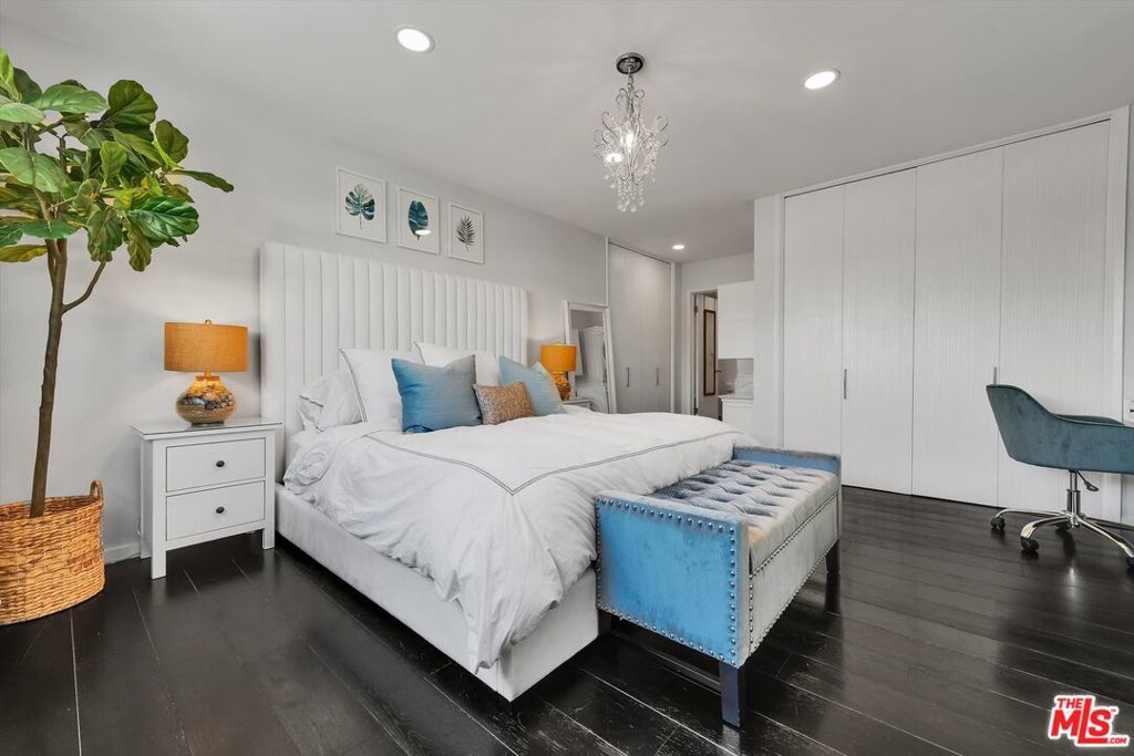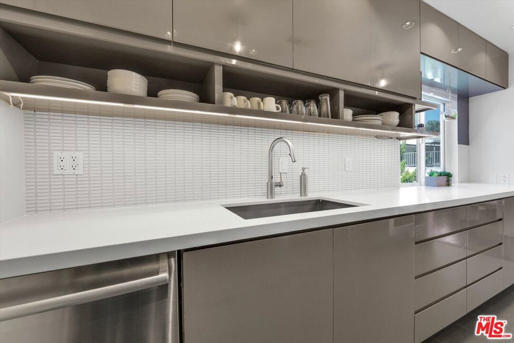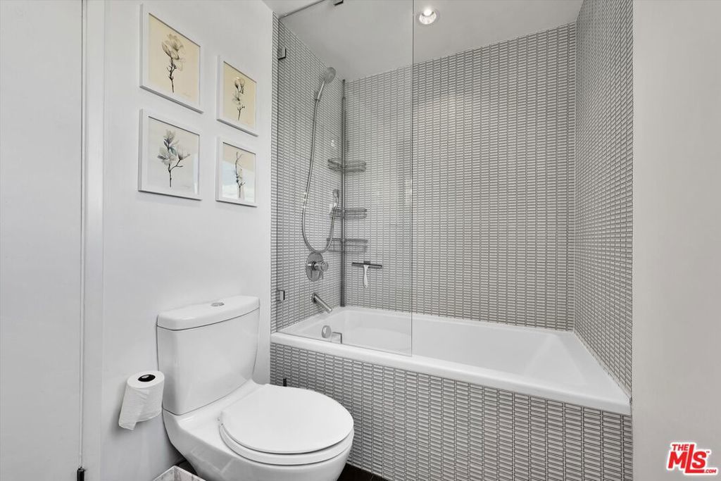 A sophisticated condo located in one of LA's most desirable and quietly tucked away neighborhoods above Sunset Blvd. This 2-bedroom, 2-bath, remodeled and well maintained residence features: washer/dryer in unit, gourmet kitchen with new Bosch stainless steel appliances and touchless faucet, new double-pane windows and sliding door, European bathroom fixtures, and a water filtration system in both the kitchen and primary shower. Enjoy smart-home living with central air and heat, Lutron lighting, and a Ring doorbell - all controlled from your phone. The top-floor corner layout offers windows on 3 sides and no shared walls to neighbors, filling the home with natural light and exceptional privacy. The living room overlooks the Hollywood Hills, while the dining area flows effortlessly into the kitchen, ideal for entertaining. Step onto your private balcony, where outdoor tile perfectly matches the indoor oak wood floors, creating a seamless indoor-outdoor feel. The primary bedroom features stunning Downtown LA views, blackout shades, and an incredible en-suite bath with (for once!) enough closet space. The secondary bedroom is perfect for guests, family, or use as a home office or creative studio. All of this is set within a secured mid-century building featuring a pool, side-by-side parking, security features throughout, and additional storage. Conveniently located near Trader Joe's, Chateau Marmont, Laugh Factory, Whole Foods, Bristol Farms, and more LA favorites.