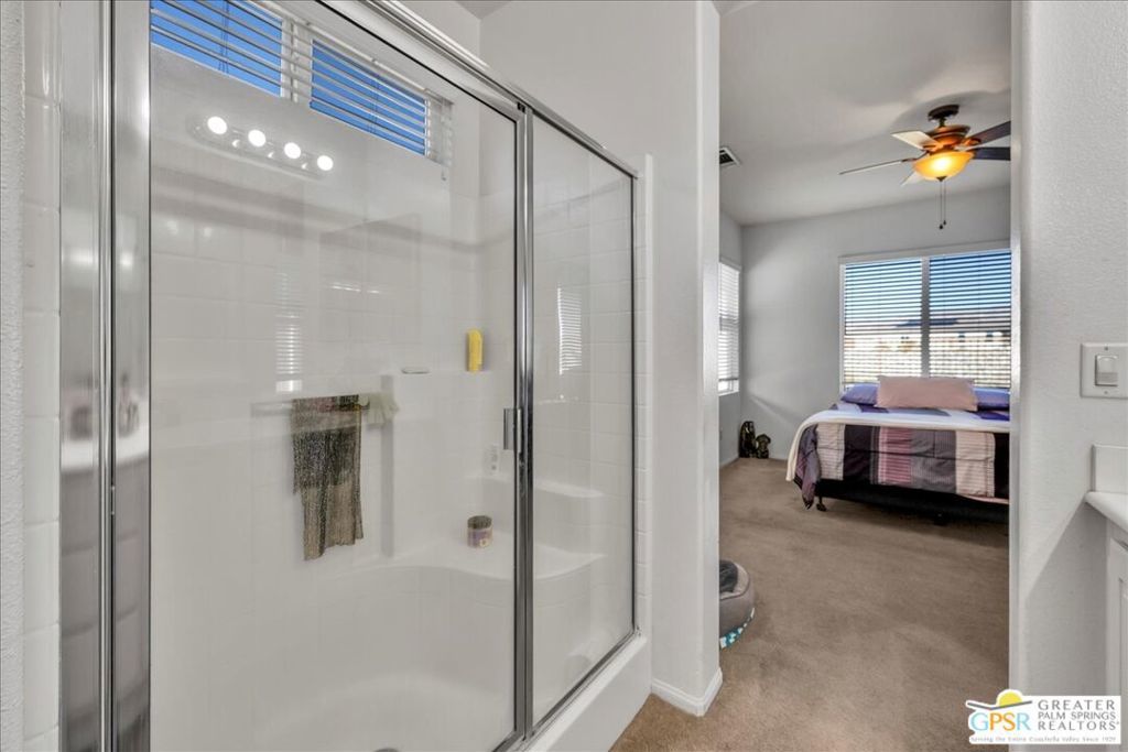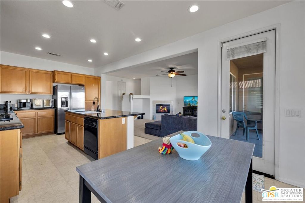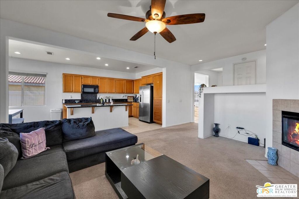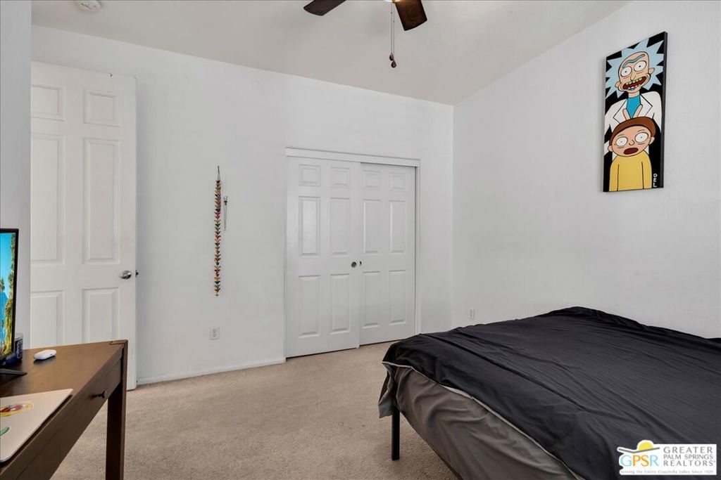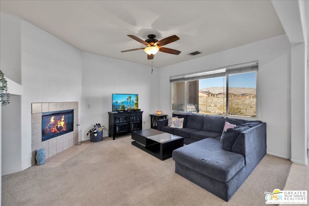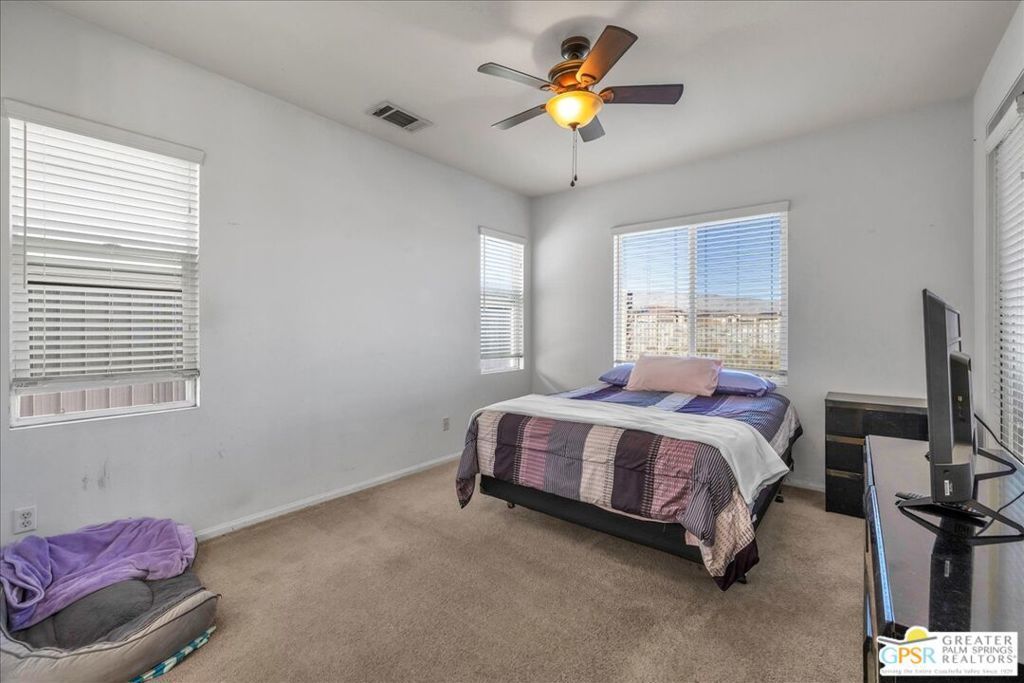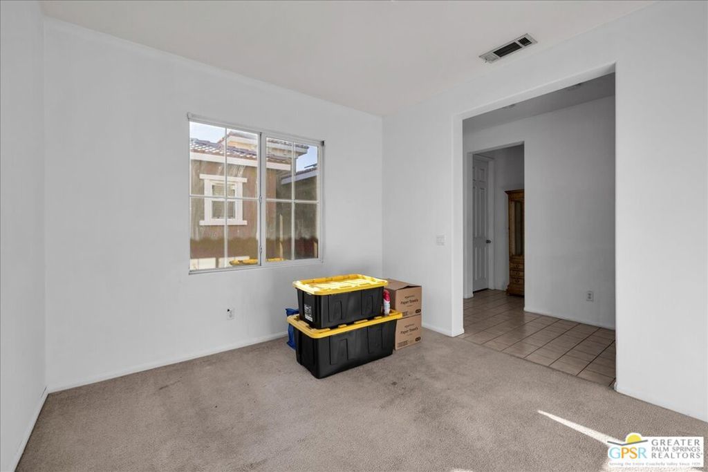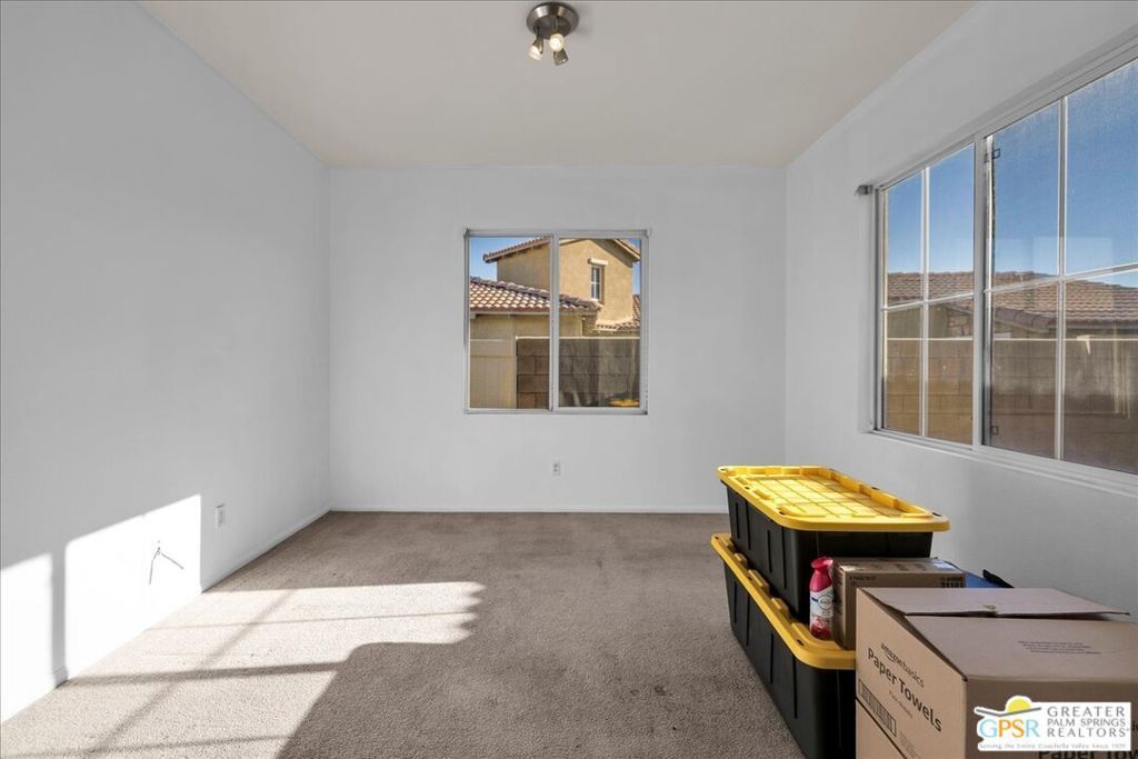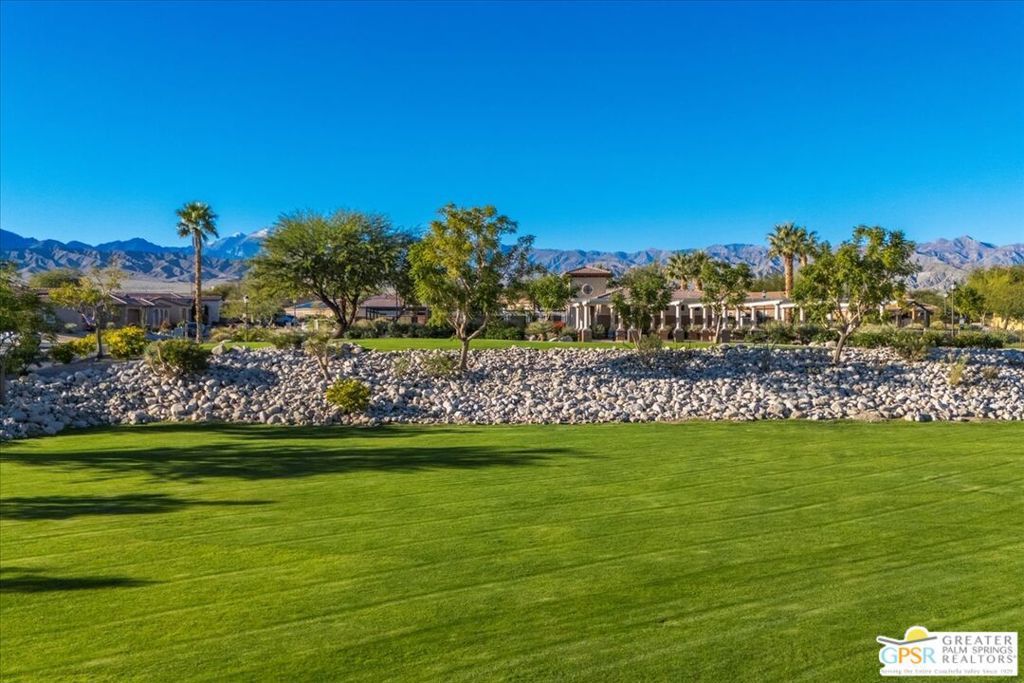 Skyborne is one of the fastest growing communities in Desert Hot Springs, and once you visit you will see why! This is a family-friendly gated community with low HOAs and beautiful common areas. This community offers a mix of part-time and full-time residents who enjoy the peaceful serenity you get once inside the gates, as well as the clubhouse and resort-style pool and spa. This home has 3 bedrooms plus a den, and one of the bedrooms is a detached casita, giving your guests the ultimate privacy when they visit. If you work from home, the casita is also a way to get some quiet and privacy for your home office, and a separation from the main house. There is also a dedicated den in addition to the 3 bedrooms, offering a great spot for a media room or a home office. The living room and kitchen offer a wonderful large space to entertain, with plenty of counter and cabinet space. Outside you have two separate areas - a protected front courtyard that is private and shielded from the afternoon sun or wind, and a backyard that opens up to the wash, allowing for beautiful views and distance from your neighbors. The north-facing layout of the backyard means you can leave your window coverings open all year, even during the hot summer months, and enjoy the natural light. This house also has solar already installed, so you can come enjoy the health and wellness the desert offers, while also harnessing the sunlight to power your home!