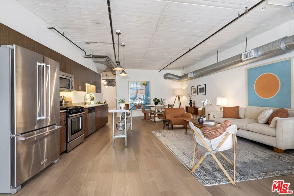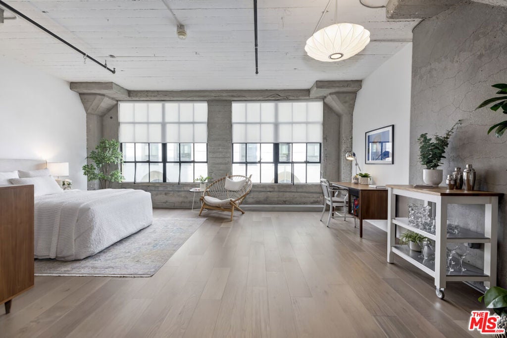 Rare opportunity to rent in the architecturally significant live/work Alta Lofts; designed in 1925 by Mayan & Wiltern Theaters architects for Fuller Paint Company. In 2007, Pugh +Scarpa redesigned this historic industrial building by weaving modern comforts into this urban living warehouse. Giant Birds of Paradise welcome you home in the beautifully landscaped six-story courtyard, complete with a stunning Art Deco lobby and a shared seating lounge area; great for working on your computer or reading a book in this peaceful open setting. The parking for this unit is on the 2nd floor, so you can enter your unit directly without getting into the elevator! This sophisticated 2nd-floor modern loft features high ceilings and a wall of double pane windows that allow natural light to roll into this creative space. Recently installed wood floors throughout with designer lighting filling the space with warmth. The kitchen has granite counters, stainless-steel appliances, including a dishwasher, microwave, and stainless-steel island! When you enter, there are modern rustic lights, wood hall cabinets with floating shelves, and a stylish solid wood barn door that leads into a spacious walk-thru closet with an Elfa customizable shelf system and a smart laundry appliance set. The bathroom has been sophistically remodeled with a large, secluded shower, designer sink and mirror. The unit has exposed concrete pillars, coupled with the original pivot steel windows and custom blinds provide a true loft feeling. The pet-friendly building has low HOA dues covering water, gas, trash, a gym, a BBQ area, a furnished recreation room, and bike storage. Each unit is constructed of concrete, so neighbor noise is virtually nonexistent, but at the same time you feel like a part of this thriving community. The LA River Bike path to Elysian Park or LA State Historic Park are close by, and immediate surroundings include Flat Top, Frog Town, Dodger Stadium, Chinatown, and Lincoln/Cypress Gold Line Station. Quick access to the 5/110 freeways and a short stroll to the Blue Line station, make this a perfect home to escape the rush of the city while still being front and center of it all. Unit is currently unfurnished.