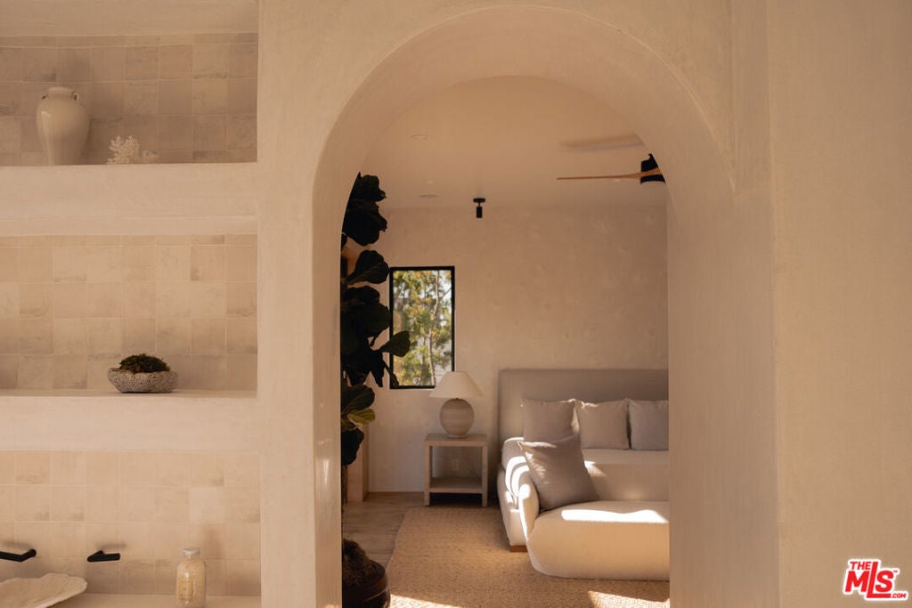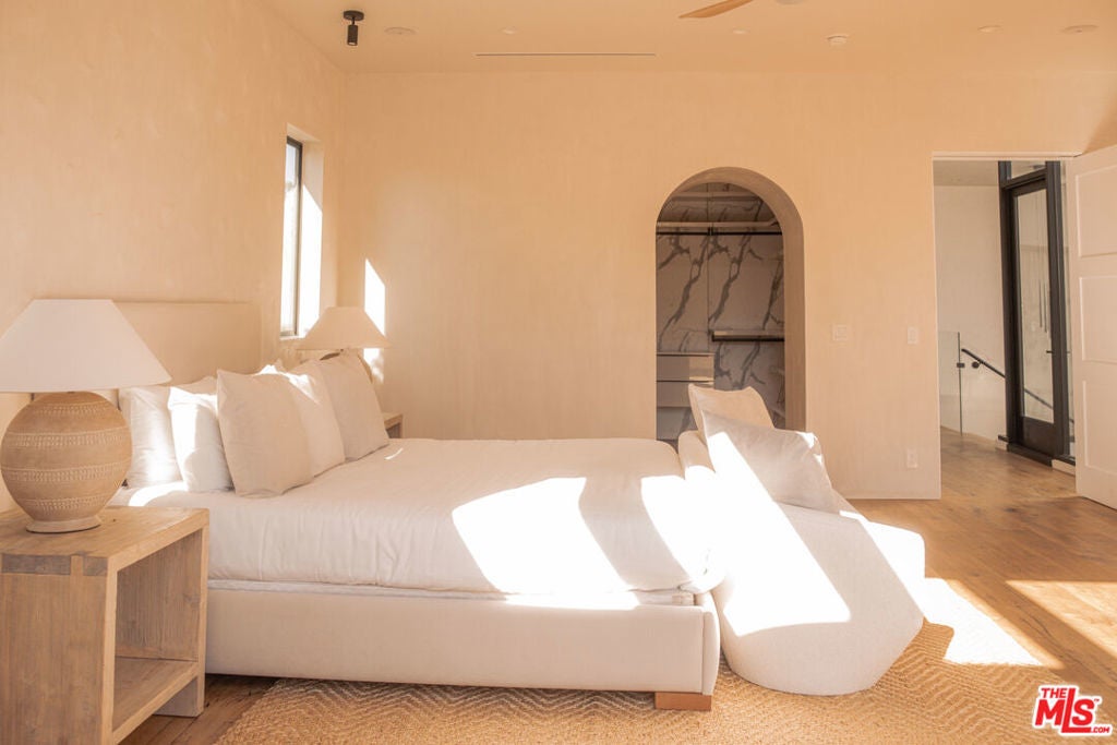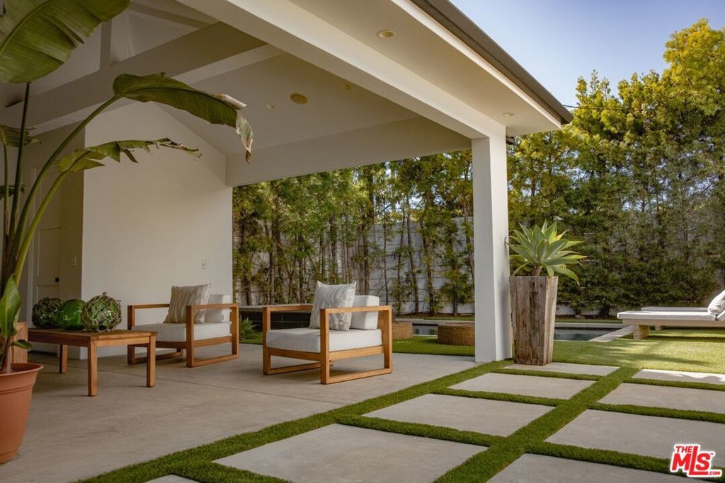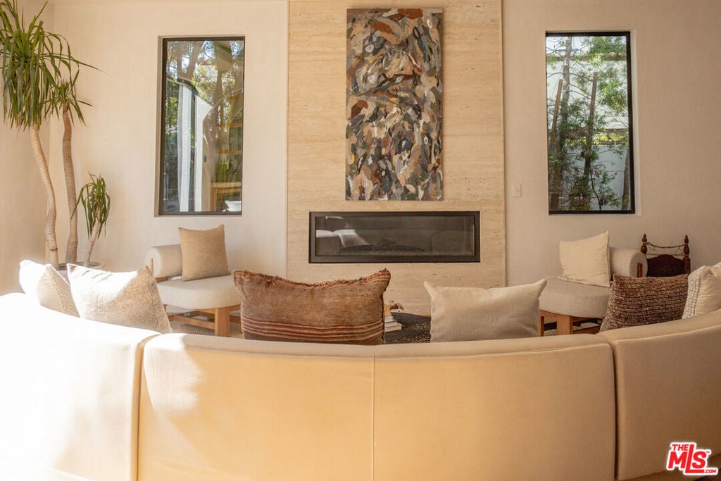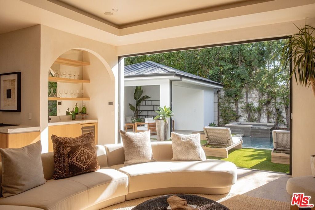 Discover a meticulously reimagined sanctuary where Tulum inspired elegance meets relaxed sophistication. Situated in the heart of Beverly Grove, this gated architectural masterpiece seamlessly blends modern design with effortless luxury. Spanning over 5,000 SF of indoor-outdoor living, the home features a gourmet kitchen with Miele and Leicht appliances, an oversized island, and pocket sliding doors that connect bright interiors to lush outdoor spaces.Featuring four spacious bedrooms and six luxurious bathrooms, this home includes a stunning primary suite with a cozy fireplace, a large private balcony, custom walk-in closets, and a sleek spa-inspired bathroom with a freestanding soaking tub. The second floor offers a charming outdoor terrace, leading to a rooftop deck complete with a built-in wet bar and breathtaking 360-degree views. Enhanced by a state-of-the-art Control4 home automation system, this residence effortlessly combines comfort and modern sophistication.