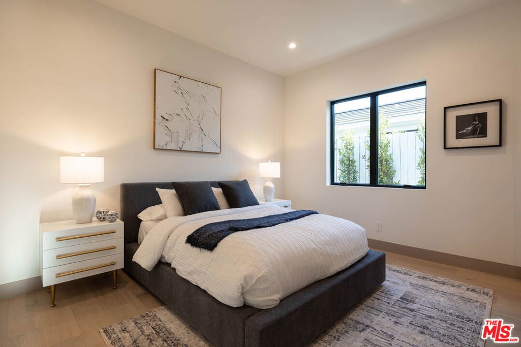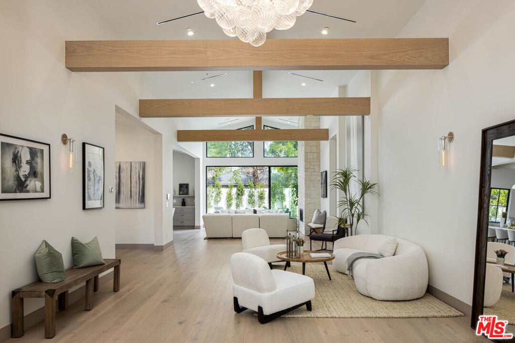 Located moments from Erewhon, Equinox, and the newly reimagined Sportsmen's Lodge, this simple yet sophisticated single-story modern farmhouse offers effortless luxury in the heart of Sherman Oaks. Thoughtfully designed on one level, the home features 4 spacious en-suite bedrooms and 4.5 bathrooms. A dramatic entry foyer anchors the flow, leading to beautifully proportioned living spaces. The gourmet chef's kitchen is a showpiece, appointed with custom quartzite countertops, a generous center island, La Cornue range, and Thermador appliances ideal for both everyday cooking and elevated entertaining. The serene primary suite is a private retreat with a generous wardrobe, spa-inspired bath with a soaking tub, double shower, and refined natural stone finishes. Each additional bedroom is en-suite, highlighted by bespoke plasterwork, artisanal tile, and refined stone details. Designed for California living, the property is secured by a gated front yard and features a resort-style rear yard with a pool, spa, and outdoor kitchen perfect for gatherings with friends and family. Modern amenities include solar panels and a Control4 smart home system for comfort and convenience. An exceptional blend of style, function, and location, this is Sherman Oaks living at its finest.