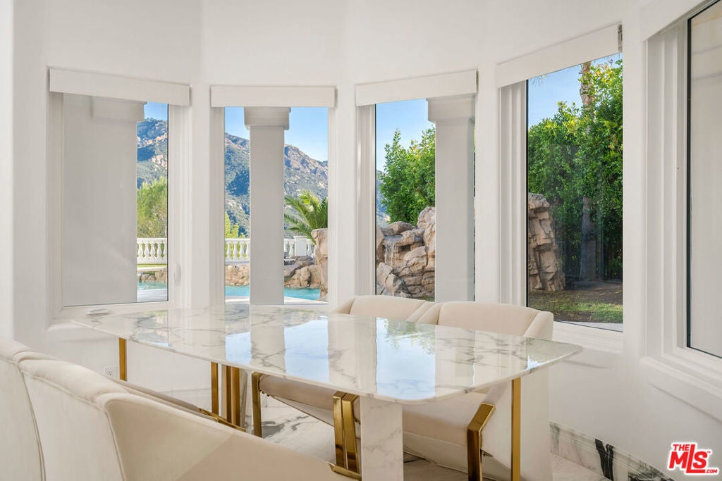 Set on over six acres behind private gates, this distinguished Mediterranean inspired modern estate offers a level of quality and discretion suited for the most particular owners. The residence spans approximately 7547 square feet with six bedrooms and six bathrooms and is introduced by soaring ceilings and expansive walls of glass that frame the tranquil grounds and mountains beyond. Every finish has been thoughtfully selected, showcasing refined stonework, designer surfaces, and a statement fireplace that anchors the grand living spaces and creates an atmosphere of understated luxury. A separate guest suite with its own entrance and patio provides an elegant and private retreat for visitors or extended stays. The outdoor areas evoke a true resort setting with a meticulously positioned pool capturing sweeping views, complemented by multiple terraces and manicured landscaping that enhance both serenity and sophistication. This exceptional Calabasas estate represents a rare offering for buyers seeking pedigree design, substantial acreage, and the utmost privacy.
