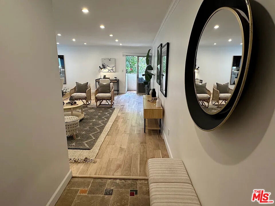 Experience modern West Hollywood living in this beautifully remodeled 2-bedroom, 2-bathroom unit close to Sunset Plaza. This naturally bright, spacious corner unit features stainless-steel appliances and a stylish galley kitchen, and an open floor plan living area perfect for entertaining. Enjoy the convenience of an in-unit washer/dryer combo, private balcony, and two secure side-by-side subterranean parking spaces. The building offers premium amenities, including a pool, fitness center, and a rooftop deck with stunning city views ideal for relaxing or hosting friends. Don't miss this rare opportunity to live in the heart of West Hollywood, close to cafes, dining, shopping, and nightlife.