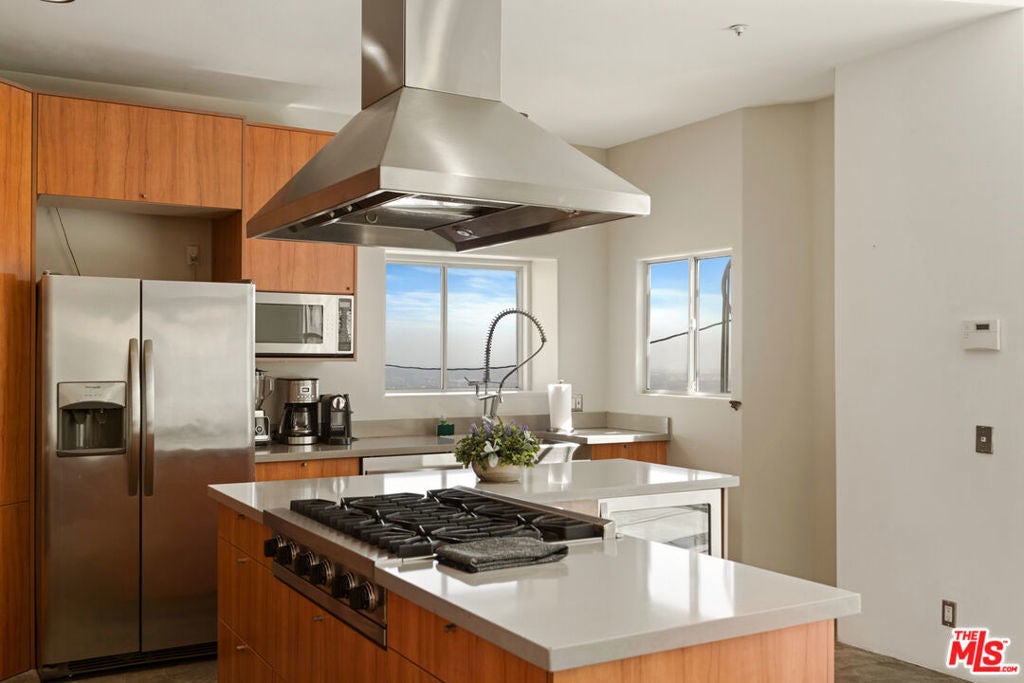 Available full-furnished and turnkey for short or long-term rentals! Envelop yourself in sophisticated opulence while basking in the splendor of spectacular city views in the architectural elegance of this modern masterpiece. Past the stainless steel entrance door and up the elevator, polished porcelain tile greets you when you enter the capacious great room, ideal for entertaining family and friends or lounging in glorious natural light entering through the walls of windows and glass doors. A custom kitchen with Viking appliances, stunning cabinetry, wine refrigerator and built-in Miele coffee machine and large dining area are adjacent top the great room and offer you the same wonderful access to light and city views. A secluded pool with and seating area present you an escape from summer heat and year-round exercise or leisure. When you are ready to call it a day the top level master suite features a soaring arched ceiling, a foyer which can serve you as on office or lounge, a double-sided fireplace, 2 expansive bathrooms, a large walk-in closet, and a wrap-around terrace to enjoy the panoramic scenery. Four additional guest rooms, three with en suite baths, are available for your family and friends. Fully furnished and meticulously decorated, this wonderful 5 bedroom retreat features a 4-car garage and is located minutes from the Sunset Strip with its classic dining and iconic entertainment venues.
