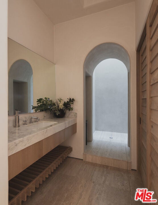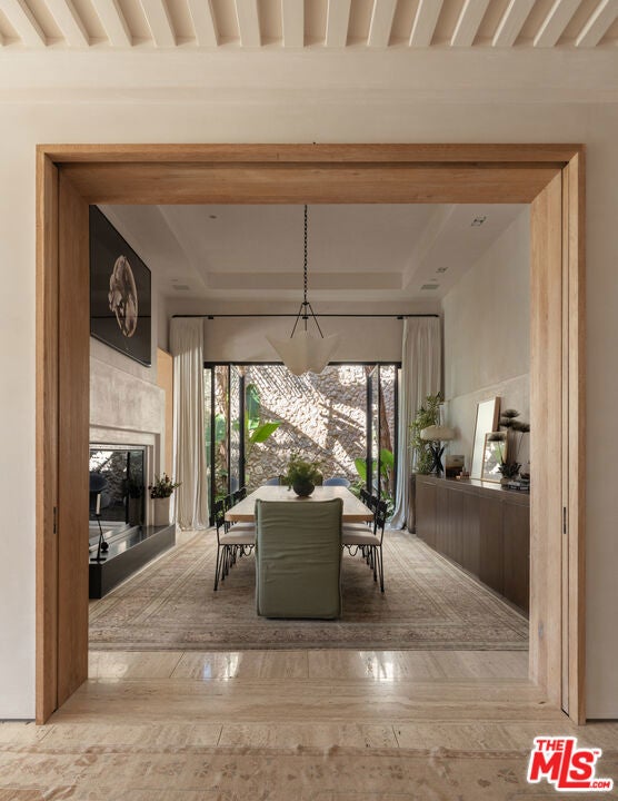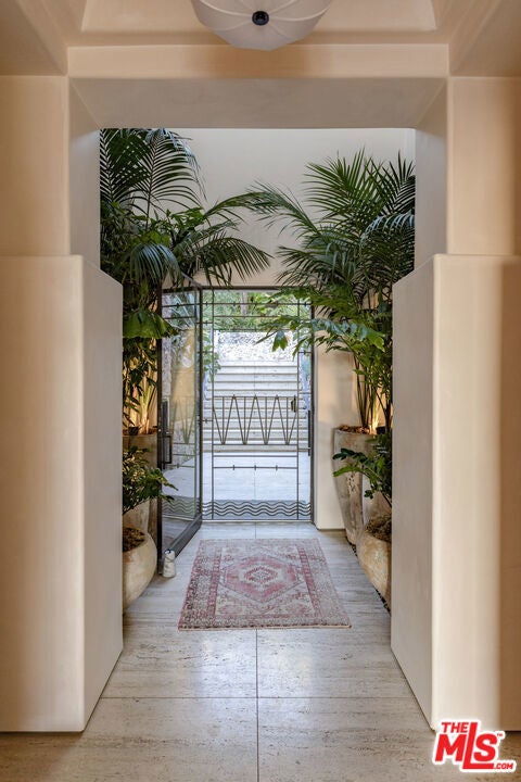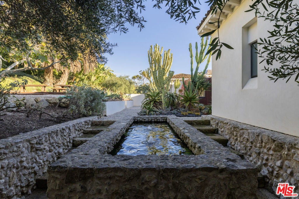 Perched above the coastline on 2.3 ocean-view acres in Hope Ranch, 4160 La Ladera Road is an architectural sanctuary where stone, light, and ocean views shape every moment. Thoughtfully composed, the estate blends contemporary Mediterranean lines with resort-style amenities to create a home that feels both sculptural and deeply livable. The entry is dramatic and processional. A double-height canyon of hand-laid limestone, framed by bold agaves and lush plantings, draws you in and guides you toward a glass-framed doorway with the first glimpse of the water beyond. Warm wood accents and carefully placed lighting amplify the sense of arrival and set the tone for what unfolds inside. Within, nature and architecture work in concert. Oversized pivoting iron-and-glass doors open the great room and main living areas to terraces, gardens, and the pool, turning the core of the home into a seamless indoor-outdoor pavilion. Long sightlines carry your eye to the horizon, while stone floors, high ceilings, and smooth plaster walls create a quiet, refined backdrop. The residence lives as three interrelated volumes. The lower level, wrapped in buff-colored Santa Barbara limestone, contains the primary gathering spaces and gives the structure a grounded, sculptural presence. Above, the upper floor is finished in light stucco and capped with a tile roof- a contemporary nod to Santa Barbara's Spanish heritage. A wide central corridor unites these spaces and makes the home feel expansive yet effortless to move through. At the heart of the plan, the kitchen and adjacent dining areas open directly to an ocean-facing terrace and the 75-foot swimming pool, so daily life and entertaining naturally spill outdoors. Sleek surfaces and professional-grade appliances are balanced by warm materials and ever-present views, creating a space that works as well for a quiet morning coffee as it does for a large gathering. Two primary suites offer distinct expressions of luxury: a main-floor suite with pivoting doors to the gardens and a spa-like bath with soaking tub and separate shower, and an upstairs suite with sweeping ocean vistas, custom designer closet and a sense of retreat. Additional en-suite bedrooms, an office, media room, and flexible spaces round out a floor plan that supports both privacy and connection. Outside, the estate lives like a private resort. The long pool and spa stretch along the horizon, bordered by generous terraces for lounging and dining. A modern open-air pavilion with a fireplace becomes the natural gathering spot at dusk. Bocce ball, courtyards, an orchard, and layered botanical and cactus gardens create a series of outdoor rooms to enjoy from morning to evening. A detached structure-currently used as an ocean-view gym-opens to its own terrace and captures the golden Santa Barbara light. A separate spa building with a sauna, a temperature controlled wine cellar, and thoughtfully curated landscape elements complete a property designed for both daily comfort and unforgettable stays. Set within the coveted enclave of Hope Ranch, with exclusive access to the residents-only beach and more than 20 miles of riding trails, 4160 La Ladera Road offers the privacy of a retreat with the ease of world-class coastal living.