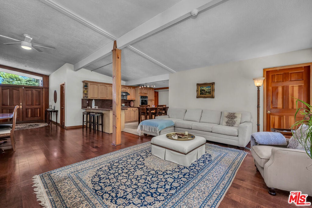 Serene Mid-Century escape with soaring architectural ceilings, located south of Ventura Blvd in Sherman Oak Hills and just minutes to the Westside, Mulholland's private school row, and in the desirable Roscomare Road Elementary district. This 3-bedroom, 2-bath home spans approx. 2,400 sq ft and is filled with natural light and greenery views from every room. Features include a formal living room, cozy family room, open kitchen with new appliances, center island, breakfast counter, and a formal dining area. A bonus room off the family room is perfect for an office, gym, or creative space. Behind the kitchen, find a convenient laundry area, pantry, and extra storage. AC unit and roof and solar panels are also new. Another standout feature is the exceptional quietness despite the home's proximity to the 405 freeway. The backyard is a private retreat with thoughtfully designed landscaping and lush greenery, an ideal setting for peaceful outdoor living. For peace of mind, the home is equipped with an alarm system and Ring camera. This home combines timeless design, modern updates, and a rare sense of tranquility- truly a special one!