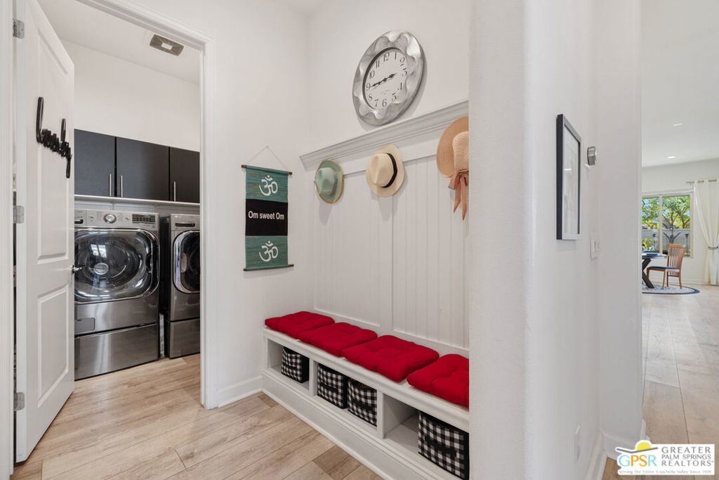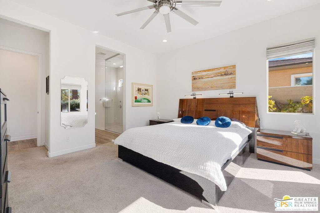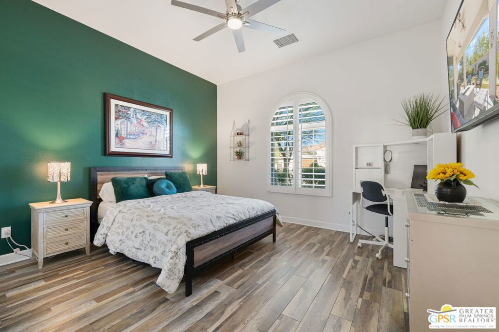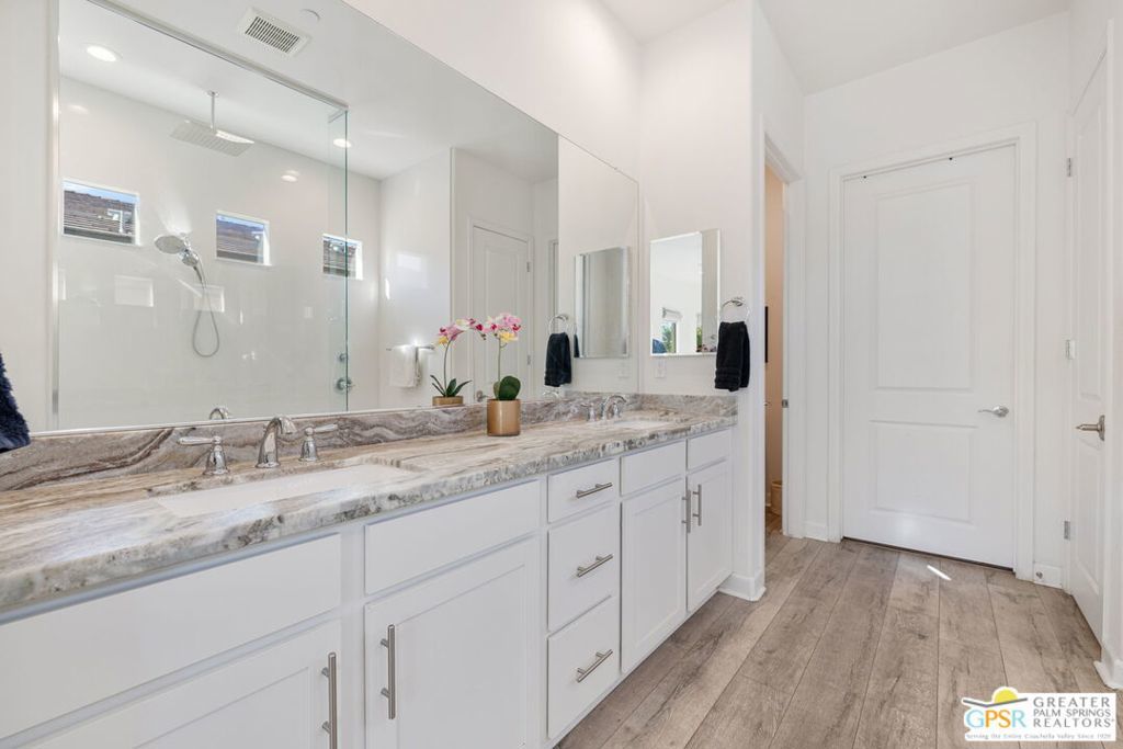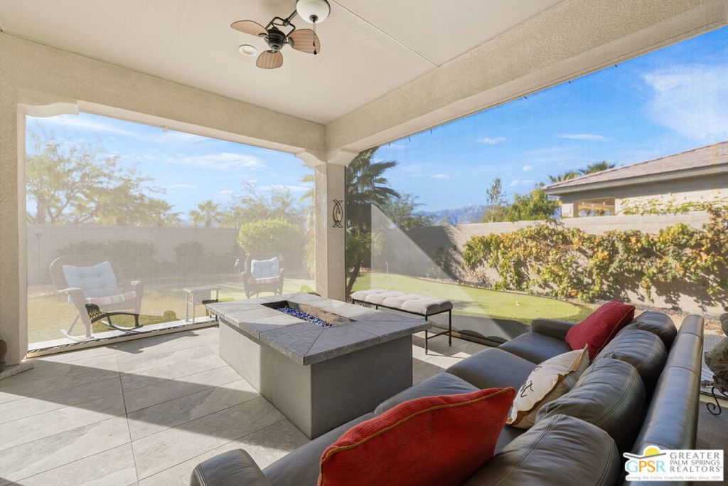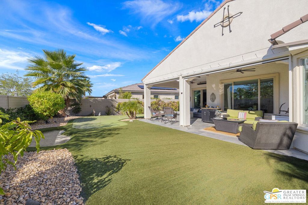 Resort-style living begins the moment you arrive at this beautifully upgraded "Preserve Model" in Del Webb Rancho Mirage - one of the desert's most desirable 55+ communities known for its vibrant social scene, clubhouse, fitness center, pools, pickleball, tennis, and more. Positioned to capture premier south-facing mountain views, this 2-bedroom PLUS den (or third bedroom) AND separate bonus room, 2-bath residence offers tall ceilings, an open floor plan, and effortless indoor/outdoor living. Designed for those who love to entertain, the gourmet kitchen shines with upgraded finishes, stainless-steel appliances, and a large walk-in pantry. The large detached island and adjacent dining area flow into the light-filled great room with a custom one-of-a-kind bar. You'll appreciate the multi-panel sliders framing the mountains. Step outside to a generous covered patio with tile flooring, fire-pit, commercial misting system, heaters, and remote-controlled sunshades ideal for year-round enjoyment. The private, low-maintenance backyard features an above-ground hot tub, putting green, and room to add a private pool or spa, all set against mountain views. The south-facing Primary Ensuite offers its own mountain views, a large walk-in closet, and a private bath with dual sinks and a walk-in shower enhanced with a bench and clerestory windows. Bedroom Two with adjacent bath is located on the opposite side of the home for excellent separation of space. The separate office/den adds flexibility and can easily serve as a third bedroom. Additional highlights include an interior laundry room, attached two-car garage, and a bonus room off the garage perfect for a workshop, wellness area, or hobby studio. A rare blend of luxury, lifestyle, and location ready to welcome its next owner.
