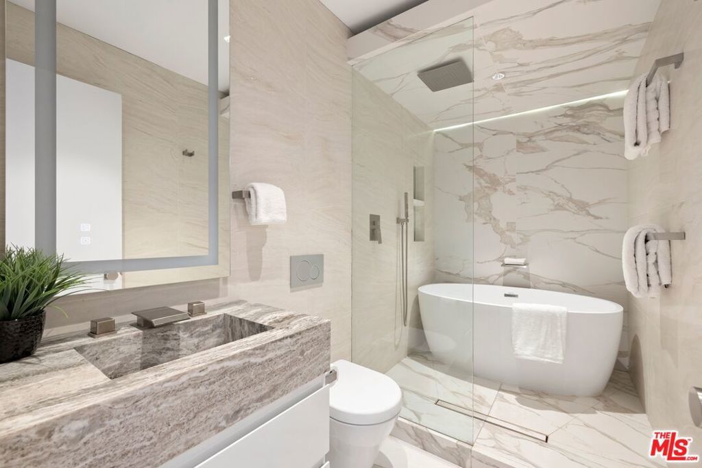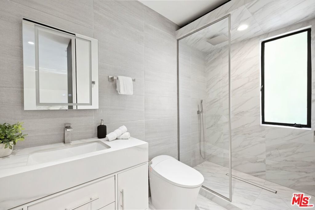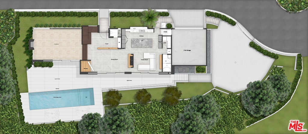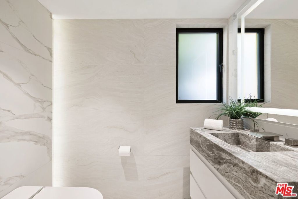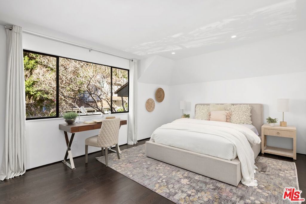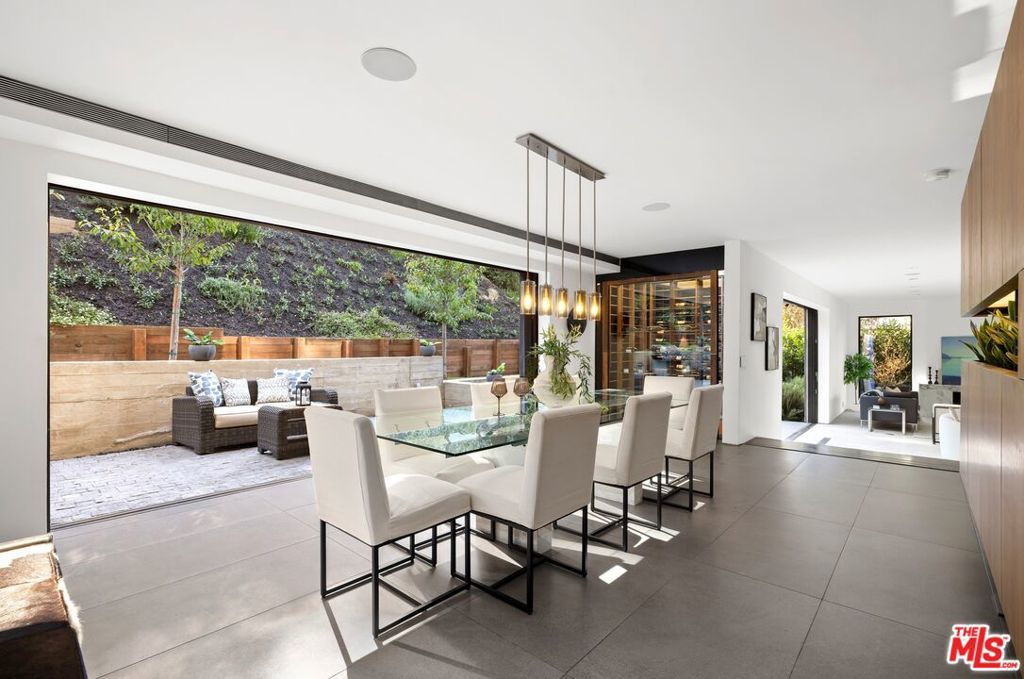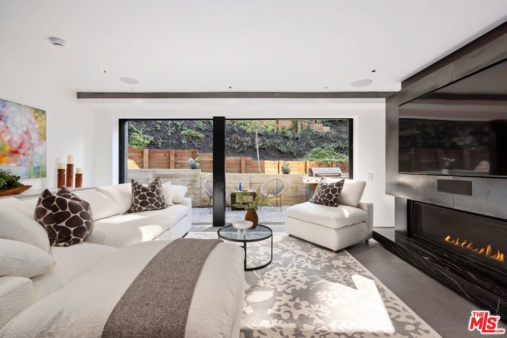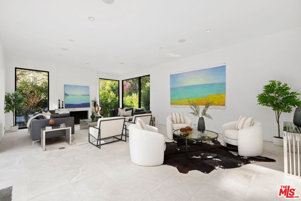 Set on a 16,270 sq ft upslope lot, this renovated two-story, four-bedroom home sits about a mile from Sunset Boulevard on a quiet Bel Air cul-de-sac. More than 190 feet of street frontage, two driveways, a 2-car garage, and plenty of off-street parking as well. The existing home is approximately 3,550 sq ft, with the potential to expand to around 5,500 sq ft or more depending on configuration.Inside, the home was recently renovated in a warm, modern style with new aluminum windows and doors, bringing in natural light and hillside views from nearly every room. Perimeter hedging provides privacy throughout. The living room has floor-to-ceiling glass, 10+ foot ceilings, and a limestone floor and an Italian marble fireplace.The first floor features an entertainer's kitchen with walnut cabinetry, Brazilian quartzite counters, a 12-foot island, and appliances from Thermador, Miele, and Gaggenau, including gas, electric, and teppanyaki cooking modules. A family room with built-in audio, a 5-foot gas fireplace, and a 16-foot pocketing glass door opens to the backyard. The dining room seats 12 comfortably and includes walnut wall panels, a 155-bottle wine display, and another full-length pocket door to the outside.Upstairs, all bedrooms have hardwood floors and modern walnut doors. The main suite includes two walk-in closets, a built-in Bose system, and a large bath with a soaking tub, dual showers, and mountain views. Three additional bedrooms are spacious and bright; one is en-suite. A fourth bedroom with wood-clad walls also works well as an office or gym.The backyard offers over 2,000 sq ft of flat space with room for an infinity pool, plus more than 3,000 sq ft of additional flat side and front yard. Plans for expansion are available. The home also includes upgraded plumbing, electrical, heated floors, and full app-controlled systems throughout.