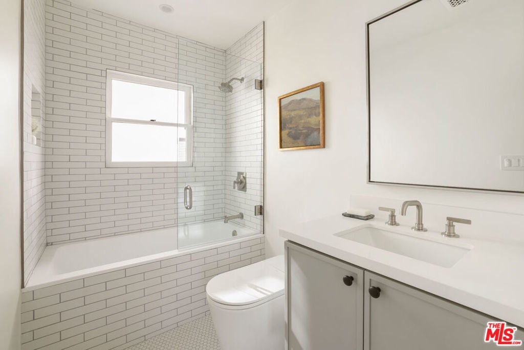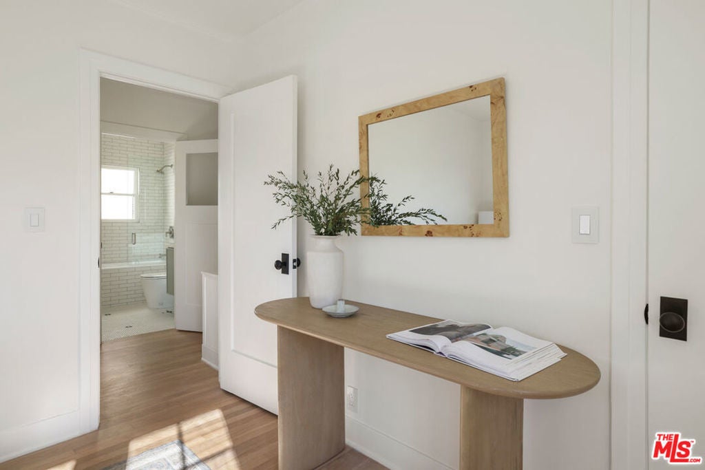 New Co-Ownership Opportunity: On a quiet street just off Melrose in Hancock Park, this 1926 Spanish two-story TIC has been impeccably restored to its original splendor, set within a designated Historic-Cultural Monument bungalow court. The residence has been revived with an eye for detail to highlight heritage charm and integrate modern updates, including refurbished original wood floors, tasteful built-ins, and recessed lighting. Oversized windows gather sunlight into the spacious living and dining area, where a decorative fireplace anchors the vintage-inspired design. The kitchen is tailored for design-savvy cooks, with a matte tile backsplash, hand-painted cabinetry, and a KitchenAid appliance suite including wine fridge. Upstairs, both bedrooms are filled with natural light, and the bath is exquisite with high-end fixtures. Surrounded by native California flora, the home enjoys a landscaped front yard. Amenities include smart lighting, central AC/heat, and parking. Ideally located near The Grove, Tartine, HEIMAT & WeHo favorites.