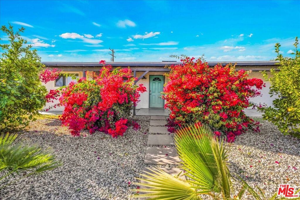 This charming Mid-Century Solar home features 4 bedrooms and 2 bath. The heart of the house is a wide-open kitchen, equipped with stainless steel appliances and a breakfast bar, seamlessly flowing into the living room. From the dining room, sliding doors lead out to a spacious covered patio with a fire pit, surrounded by a private, lush yard and beautiful hedges. There's plenty of room in the backyard for a pool and or ADU. The property also boasts several orange and lemon trees, offering stunning views of the surrounding mountains and desert, as well as a separate laundry room with its own entrance. Ideally located, this home is a short distance to Palm Springs, International Airport as well as nearby shopping, dining, and schools. This is a move-in-ready gem- you won't want to miss!