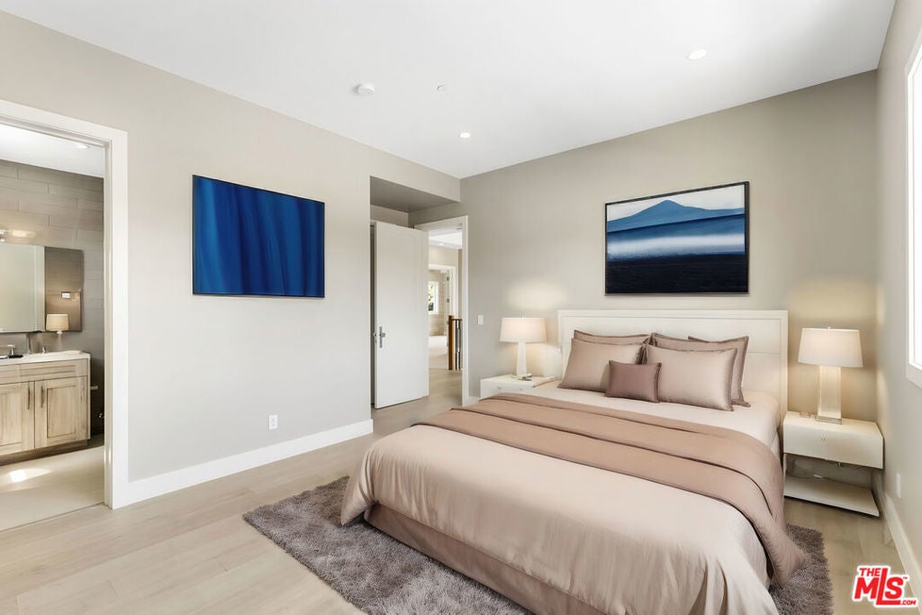 This elegant gated contemporary 2024 new construction home boasts stunning architecture and luxurious finishes. This masterpiece is situated on its own secure access street with a private driveway. You are welcomed into this two-story home, with wood floors, high ceilings, and exquisite details throughout. The wide entry hall leads to a spacious formal dining room adorned with a wine display and a floating staircase.The designer kitchen is a chef's dream, featuring quartz countertops, a center island, and Thermador appliances. The inviting family room includes a fireplace and beautiful built-in cabinets, with oversized pocket sliding glass doors that open up to the remarkable backyard, perfect for seamless indoor/outdoor entertaining.Upstairs, the lavish primary retreat offers cathedral ceilings, a private balcony, a fireplace, an oversized closet, and a primary bathroom with a dual vanity, water closet, soaking tub, and a massive standing glass rain shower. Three additional upstairs bedrooms have ensuite baths, private balconies, and walk-in closets.The private entertainer's yard is a haven of relaxation and entertainment, featuring a sparkling pool and hot tub. Additional conveniences includeControl4 Home Automation, which has full control over theintegrated climate system, alarm, lights, pool, security cameras, and surround sound. This truly marvelous home is ideally located near the BLVD, close to fine dining, shopping, and more.