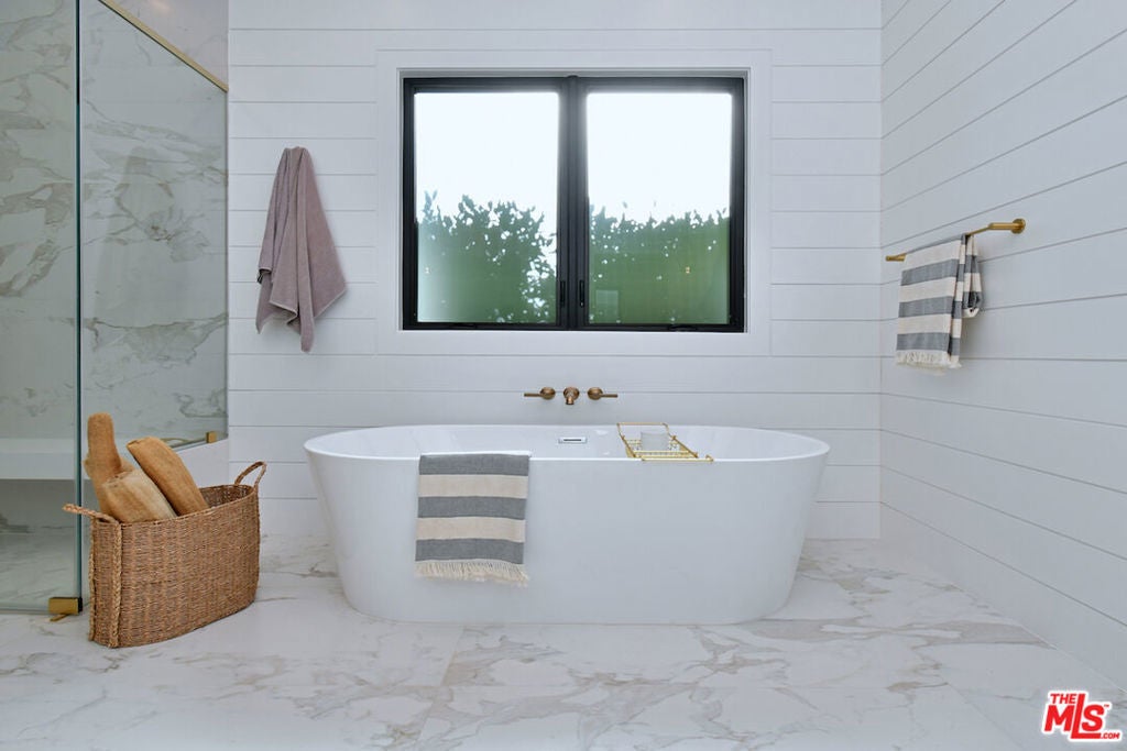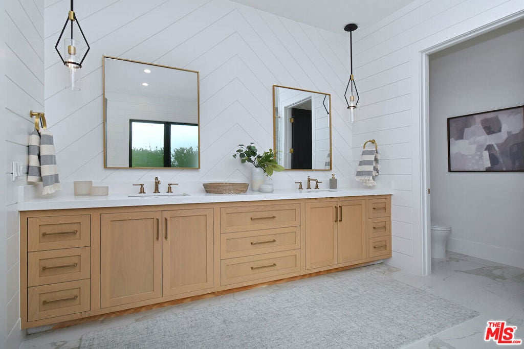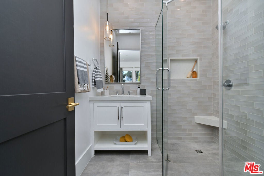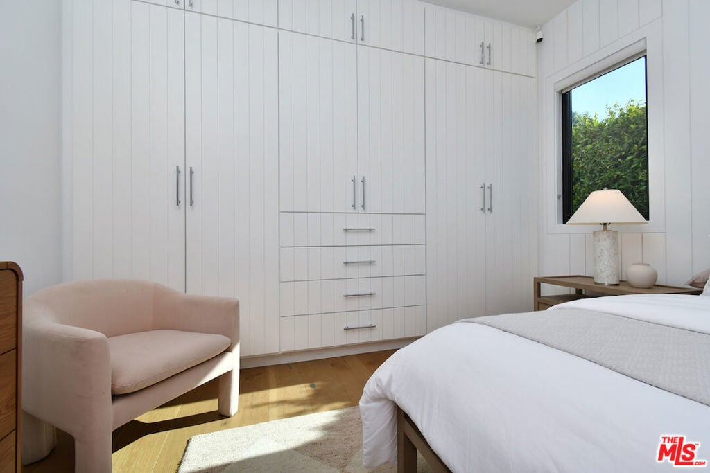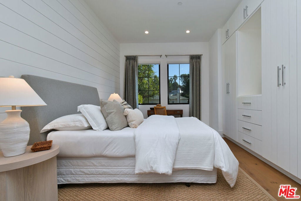 Welcome to this exceptional newer custom-built modern traditional home, designed with a focus on refined comfort and everyday ease. Located south of Ventura Blvd. behind a private gated entrance, this single-story residence features high ceilings, wide-plank hardwood floors, and an open layout that feels fresh and inviting from the moment you step into the entry foyer. The island kitchen anchors the home with custom cabinetry, a walk-in food pantry, and connection to the dining and living spaces. The formal dining area includes a built-in buffet and wine storage, offering both function and style. The adjoining living room provides a warm gathering space with built-in cabinetry, simple modern shelving, and a wood-detailed feature wall. A full wall of floor-to-ceiling sliding glass doors fills the room with natural light and opens to the backyard for easy indoor/outdoor living. All four bedrooms include their own en-suite bathrooms, and the large primary suite offers a generous retreat with a high beamed ceiling, walk-in closet, and a luxurious bath with a soaking tub and glass shower. The backyard is finished for relaxed enjoyment, complete with a heated pool and spa, patio area for dining, and a built-in BBQ island. Additional features include an indoor side-by-side laundry room and a finished two-car garage with direct entry. Thoughtful woodwork, custom hardware, and quality craftsmanship contribute to the clean, modern feel throughout. With its 2020 build/renovation, this home offers the comfort and appeal of new construction in a desirable Encino location close to shops, dining, and neighborhood amenities.