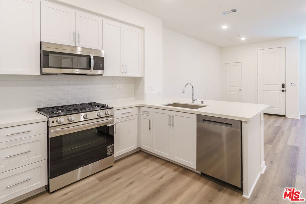 NEW CONSTRUCTION move-in ready home is available now! This townhome is ideally located in an interior part of the neighborhood and offers a layout and upgrades that stand out immediately. The main level opens with a well-appointed kitchen featuring quartz countertops, white shaker-style cabinets, and a powder room. It flows seamlessly into the living and dining areas, with LVP flooring throughout for a clean, cohesive look that's both durable and stylish. Upstairs, the primary suite includes two walk-in closets, providing generous, organized storage, something rarely found at this price point. The ensuite bath with dual sinks adds everyday practicality, while the secondary bedrooms offer the flexibility you need. The laundry room provides additional storage space and room for side-by-side appliances. Additional thoughtful features include a video doorbell, a programmable thermostat, energy-efficient windows, and a 2-car attached garage for parking with a 220V in garage! The community amenities add even more value: two electric BBQs, a covered picnic area, a lawn area for relaxing or play, and doggy stations throughout making it easy to enjoy the outdoors without leaving the neighborhood.