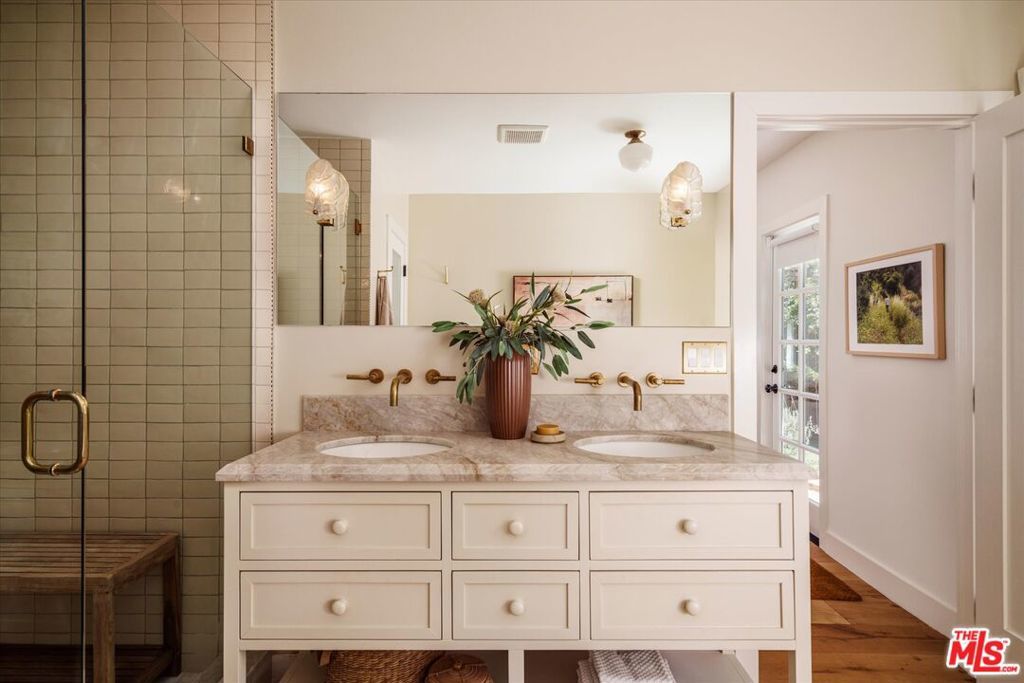 Enchanting Adams Hill Modern Spanish, restored and remodeled, with thoughtful and chic details throughout. Situated on a gentle knoll, on a quiet street, with lush green mountain views toward Glendale, the hills and beyond, this 4 bedroom 2 bath charmer, with lovely front and back yard space, will captivate you from the moment you step on the property. The architectural details speak to another age, when the design of homes were carefully considered, imbued with light and grace, and life was easy. This home exudes these qualities and brings forth a lovely picture perfect lifestyle for its inhabitants. From the arched passageways, to the wood floors, to the meticulously designed gourmet kitchen (with built in banquette and ample pantry) to the wonderful primary bedroom suite with luxurious bathroom and dreamy walk in closet, and outside to the lovely grassy yard, garden beds, dining deck and seating area with fireplace. Walkable to Palmer Park and playground, Adams Hill mini park, Kafn coffee, Little Ripper Cafe and under 10 mins drive to Glassell Park (LA Homefarm, Bub and Grandmas) Atwater Village, Highland Park and Eagle Rock. Rumor has it, Erewhon will be coming to the neighborhood this year - a 9 minute drive from the house! SO much to love. Truly a slice of heaven.