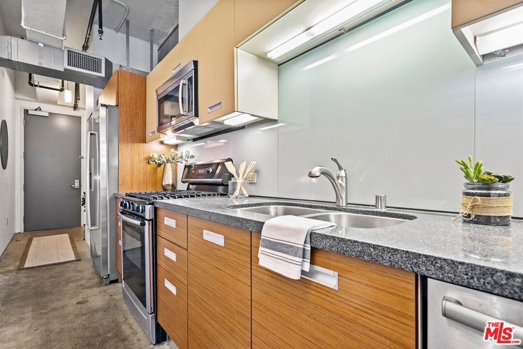 Live/Work Loft in the iconic Cornell Building located in the Fashion District's Santee Village. This SouthWest-facing unit is very bright and features concrete floors, a wall of original steel-framed windows, and 10' ceilings giving the cool industrial look. The modern kitchen has a gas range, stainless appliances, Italian cabinets, and a large island. Features a large bathroom with a soaking tub, and in-unit laundry. Santee Village offers many amenities spread among different buildings, such as 24-hour security, rooftop swimming pool, spa, golf range, BBQ Area, basketball court, fitness center, and a convenient food court and market. From the roof, you get 360-degree views spanning the mountains to city lights. Situated in the evolving Fashion District, this walkable neighborhood is home to acclaimed restaurants and shops.